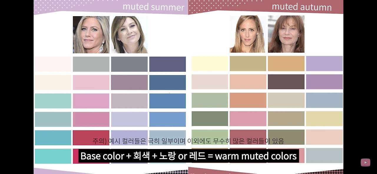 지금까지 여름뮤트 가을뮤트 그리고 뮤트 톤의 전체적인 특징과 구별하는 방법들을 알아봤습니다