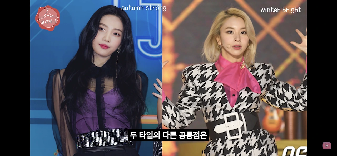 두 타입의 다른 공통점은 대비감이 큰 컬러 조합이나 패턴 화려한 메이크업도 잘 소화하는 경향이 있습니다