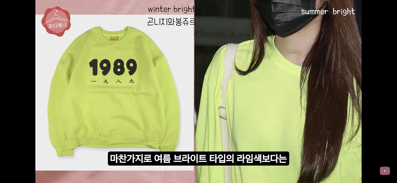 겨울 브라이트 타입은 진한 네온 라임색이 잘 어울립니다