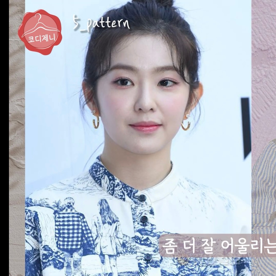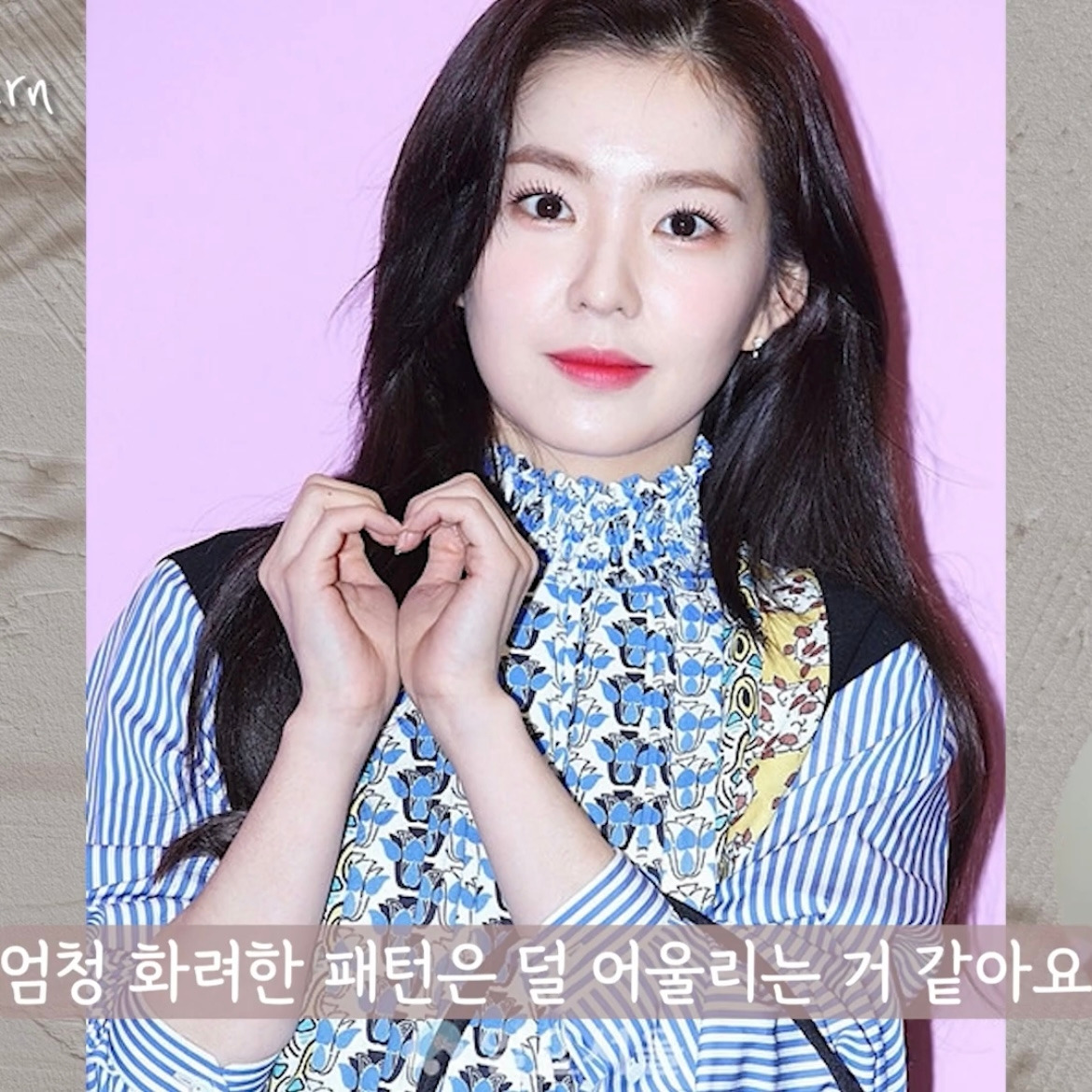 한편 아이린 님은 제가 봤을 때 엄청 화려한 패턴은 덜 어울리고, 좀 더 잔잔하고 정제된 패턴들이 더 잘 어울리는 거 같아요.
