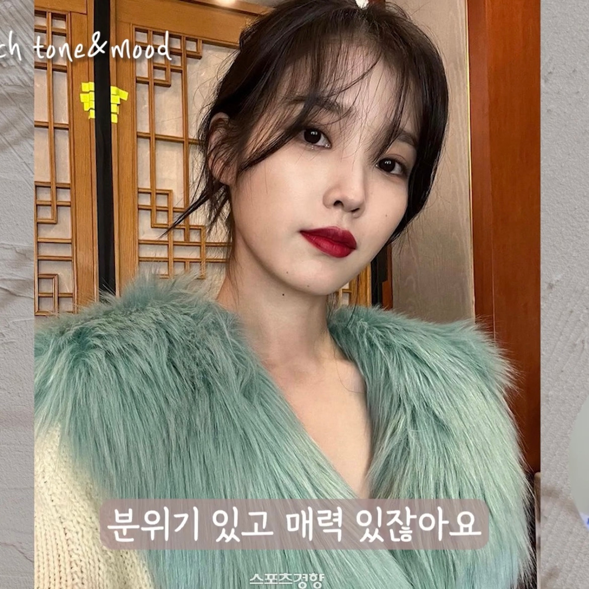 아이유 님의 짙은 버건디 립스틱도 분위기 있고 매력 있잖아요
