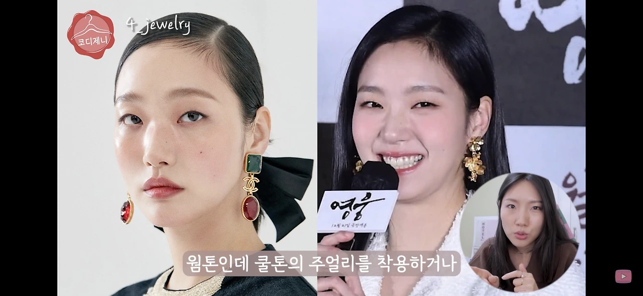 웜톤인데 쿨톤의 주얼리를 착용하거나, 쿨톤인데 웜톤의 주얼리를 착용했을 때도 마찬가지고요
