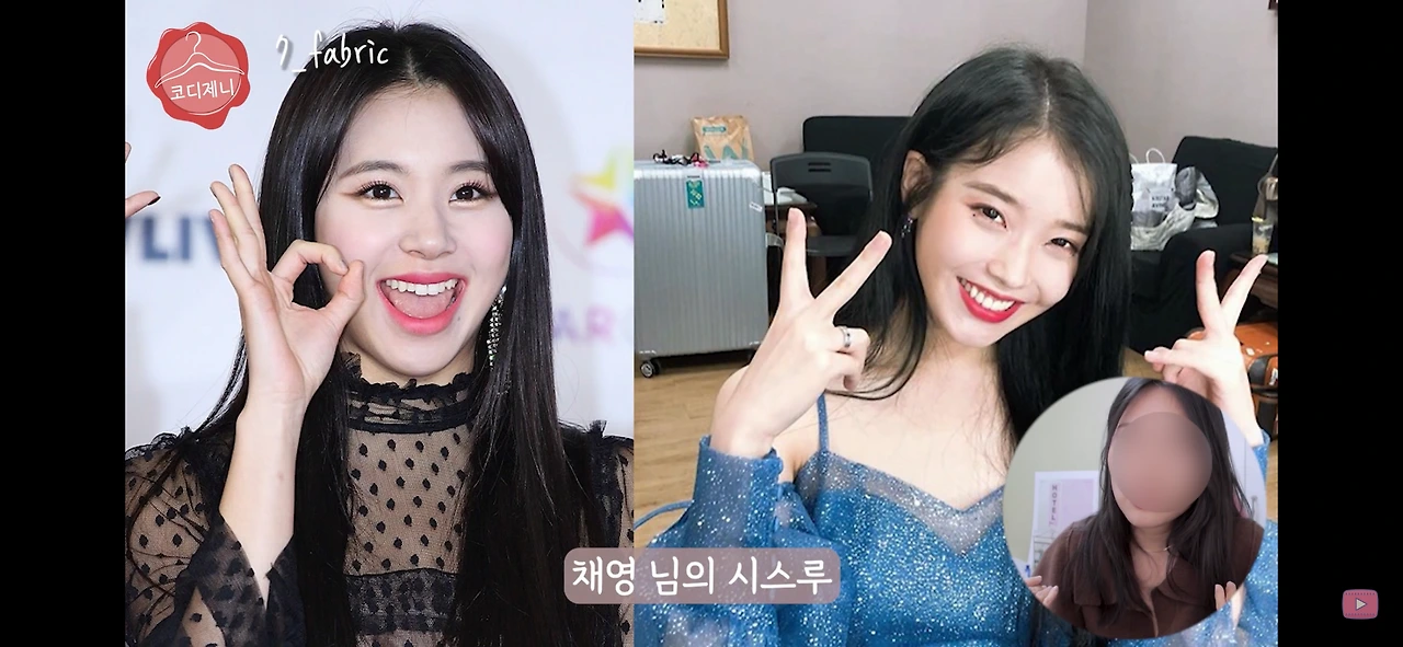 채영 님의 시스루, 아이유 님의 레이스 혹은 쉬폰 같은 소재들도 피부톤이 살짝 보이면서 얼굴에서 멀어지는 방법들 중에서 하나에요