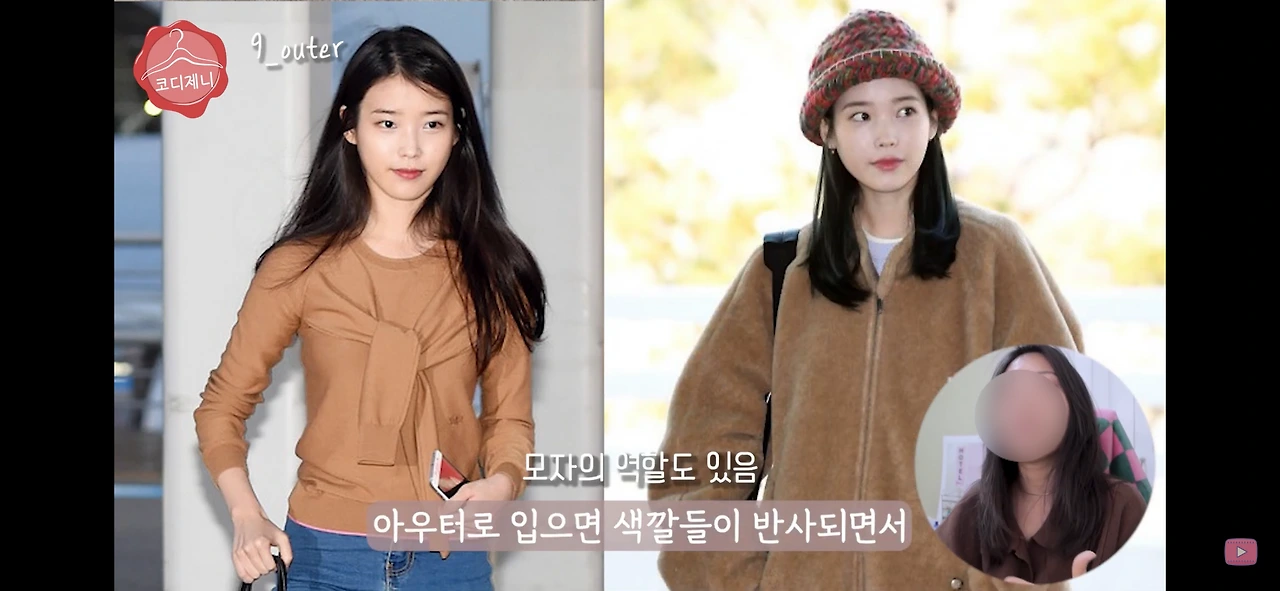 아이유 님은 봄 브라이트 타입인데, 가을 뮤트의 베이지 컬러를 입었어요