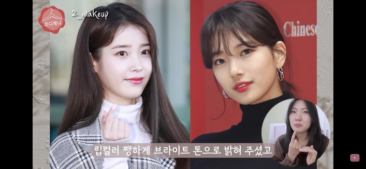 수지 님과 아이유 님도 어울리는 컬러가 아니지만 립컬러 쨍하게 브라이트 톤으로 밝혀 주셨고,
