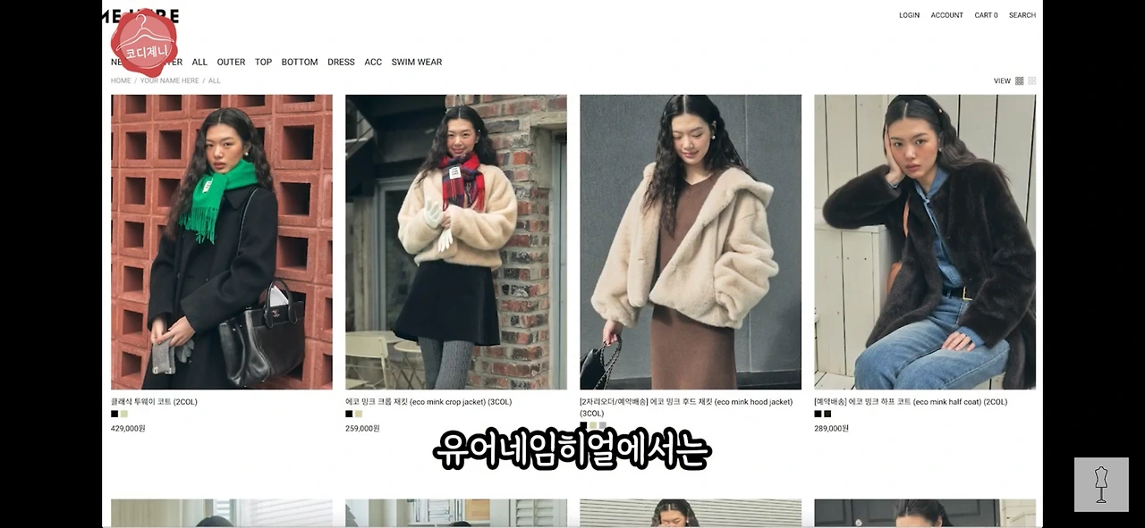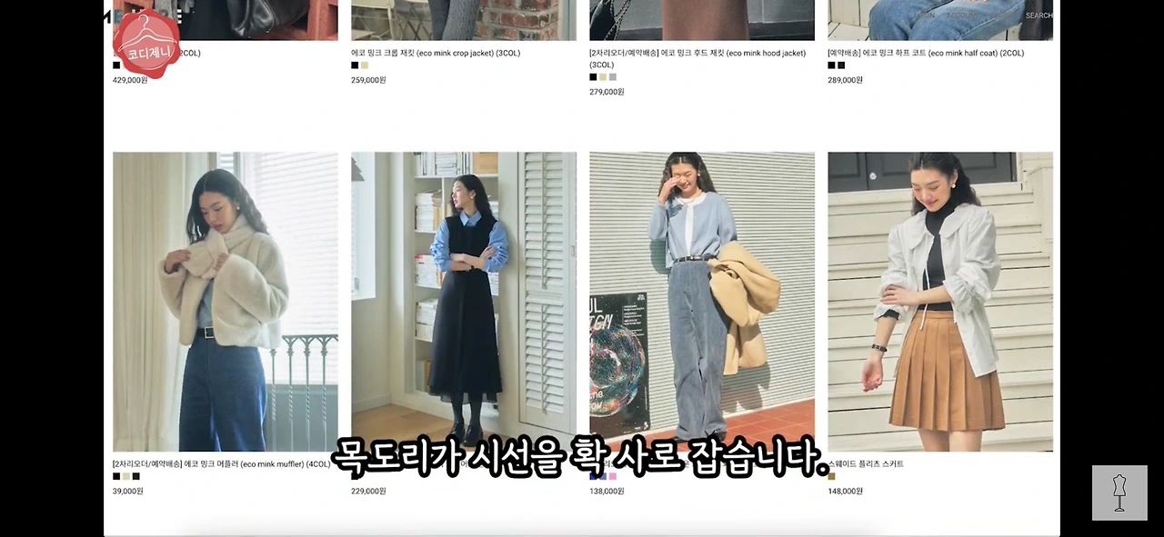 노르딕 스웨터, 숏패딩, 무스탕, 오버핏 코트 등 예쁜 다양한 아이템들이 첫 페이지부터 많아서 눈 돌아가는 체험을 했습니다.