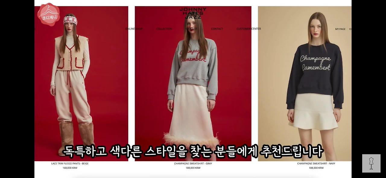 톡톡튀거나 크리스마스에 어울릴 법한 목도리가 시선을 확 사로 잡습니다. 편안하면서도 사랑스러움을 잃지 않는 스타일로 가성비도 꽤 괜찮은 편입니다. 겨울 옷이 많지 않고 계절감이 다소 통일 되지 않은 부분은 아쉽지만 예쁜 디자인이 많고 가성비가 좋으니까 둘러 보시는 것을 추천드립니다.