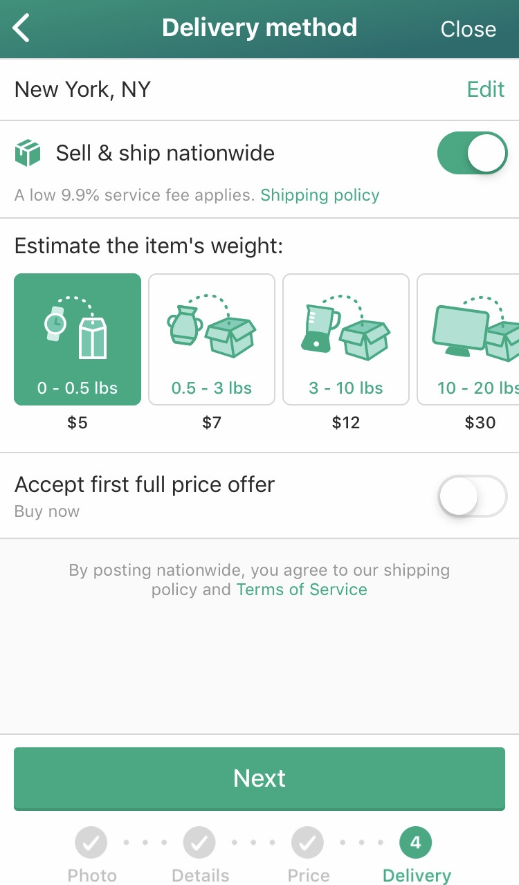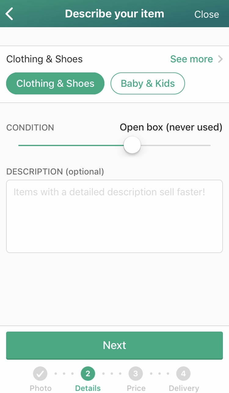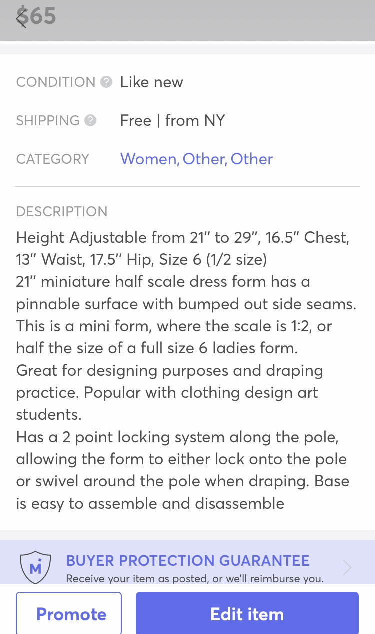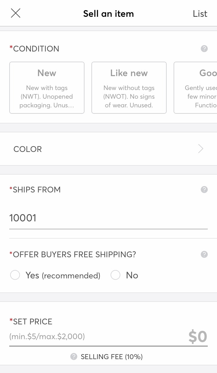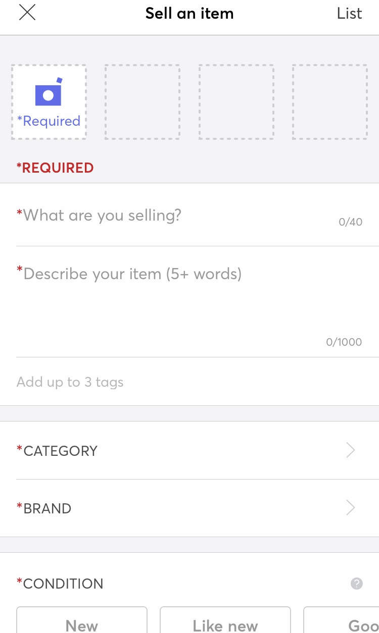 등록해야 하는 정보로는 사진, 제목, 상세 설명, 카테고리, 브랜드, 제품 상태, 색깔, 배송지 우편번호, 무료배송 여부, 가격이 있다. 가격은 내가 임의로 정하는데 나는 대체로 사용 흔적과 시중 가격을 아마존에서 다시 알아본 뒤 그에 따라 정한다.