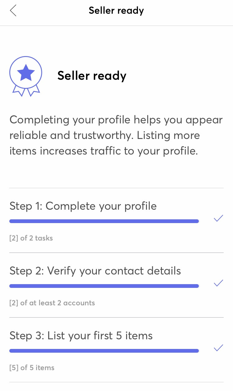 프로필 및 입금될 계좌번호(통장을 등록하면 수수료가 안 붙지만 카드번호를 등록하면 이체 수수료 $2가 붙는다) 등록, 연락처 검증, 5개 이상 제품 올리기 이 세 가지를 모두 달성하면 셀러로 등록이 된다. 다만 제품을 5개 올리지 않아도 판매가 가능하다.