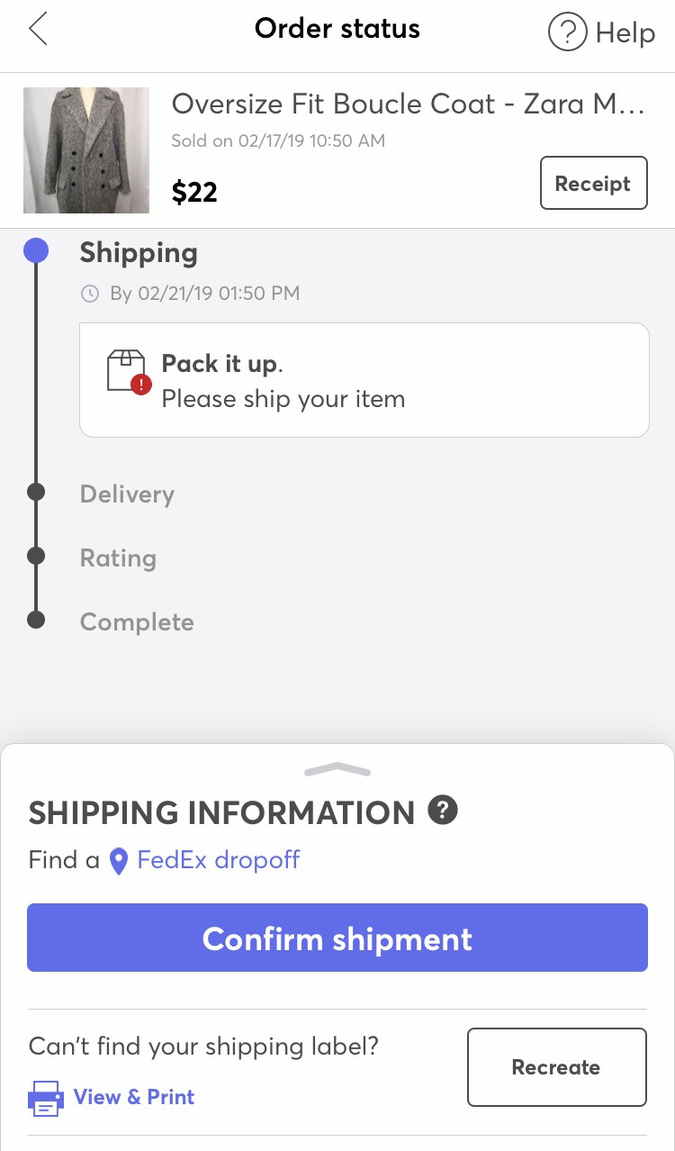 물건이 팔리면 action required 항목이 생기고 클릭하면 아이템을 배송할 수 있도록 목록이 생긴다. 목록에서 해당 제품을 클릭하면 배송 라벨이 첨부되어 있다. 나는 보통 배송 라벨을 구글 드라이브로 바로 저장해서 프린트한다.