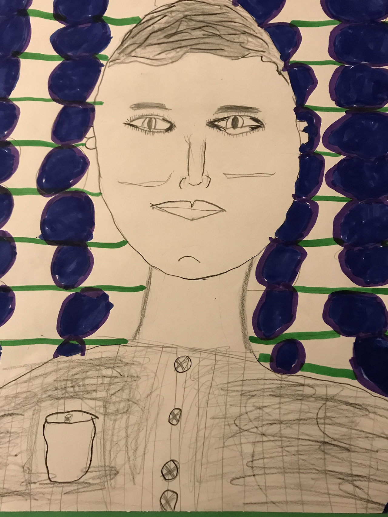 우리 집 막내 소짜가 학교에서 그려온 자화상이다.