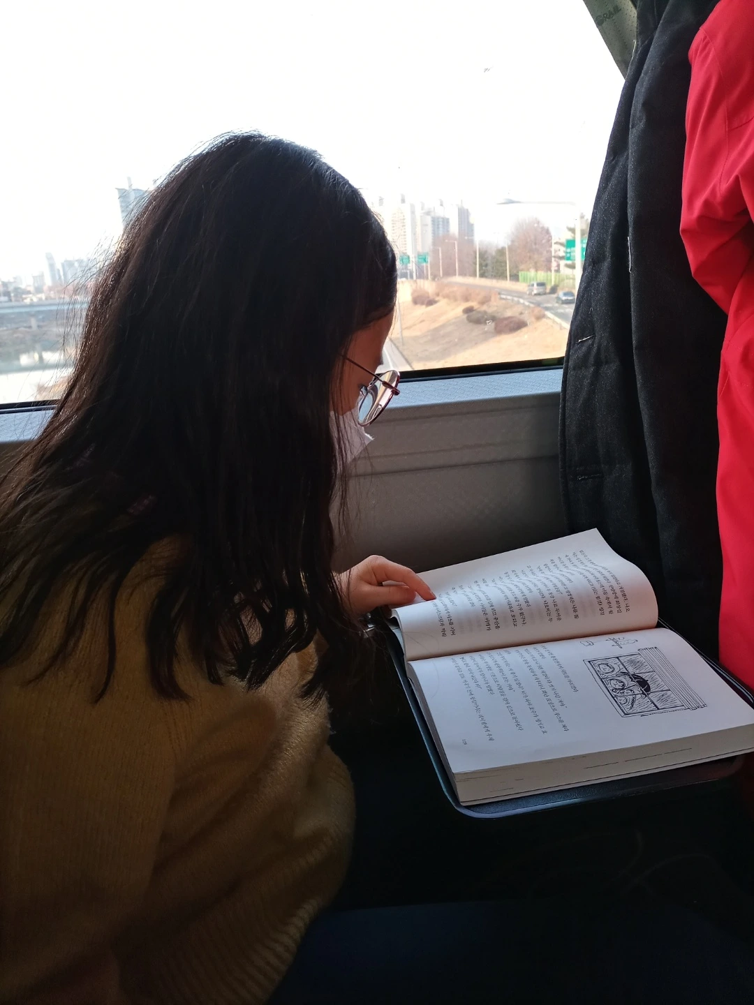 퇴근길 열차에서 독서하다 시상이 떠오른 딸