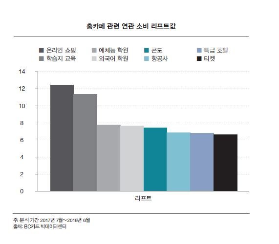 BC카드와 트렌드연구소가 2017년 12월에 소비자 1,000명을 대상으로 최근 1년간 집 안 활동을 위해 소비가 증가한 영역을 조사한 결과 ‘여가(문화, 운동, 취미) 관련 상품 및 서비스’가 37.1%로 1위를 차지했으며 ‘가구 및 인테리어 소품’이 29.9%로 2위를 차지했다. 또한 소비 영역 유형별로 보면 홈컬처, 홈가전, 홈O2O 순으로 소비 비중이 높게 나타났다. 시장에는 앞서본 사례에서 홈트, 홈인테리어, 홈파티, 홈가전, 홈O2O, 홈뷰티까지 등장한 가운데, 다음으로 소비자의 마음을 훔칠 홈OO은 과연 무엇이 있을까?