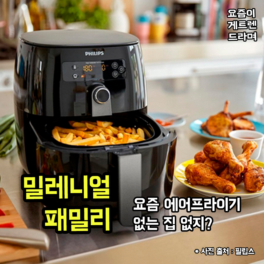로봇 청소기, 빨래 건조기와 함께 인기 급상승 중인 에어 프라이기! 이제는 에어프라이기 없는 집을 찾아보기 힘들어졌는데요. 그 매력은 바로 초간편! 이라는 것. 복잡한 요리에 들이는 시간보다 자신만의 여가, 자기계발에 집중하는 밀레니얼 가족들이 늘어나면서 HMR 시장도 덩달아 커지고 있구요! 밀레니얼 세대에게 이제 가정은 절대적인 희생을 해야하는 곳이 아니라, 대충 만족할 수 있는 '적정행복'의 장소라는 데요. 어떠신가요? 여러분도 그렇게 생각하시나요???