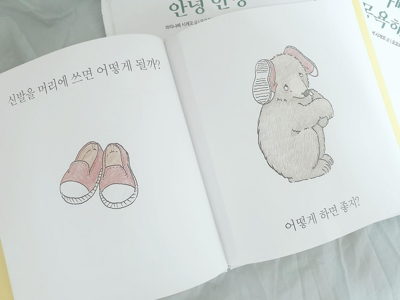 <어떻게 하면 좋지?> 그림책은 글의 양이 적은 편이다. 내용도 어렵지 않다. 아이는 이 책을 너무나 흥미 있게 보는데 엄마로서의 욕심은 '글자가 조금 더 많은 책을 읽어야 하는데..' 혹은 '이 책은 너무 쉬운 거 아니야?' 이러한 생각이 들 수도 있다. 기왕 책을 읽어주는 시간에 더 교육적으로 접근한다면 엄마도 좋고 아이에게도 좋을 것 같다는 생각을 버릴 수가 없다.