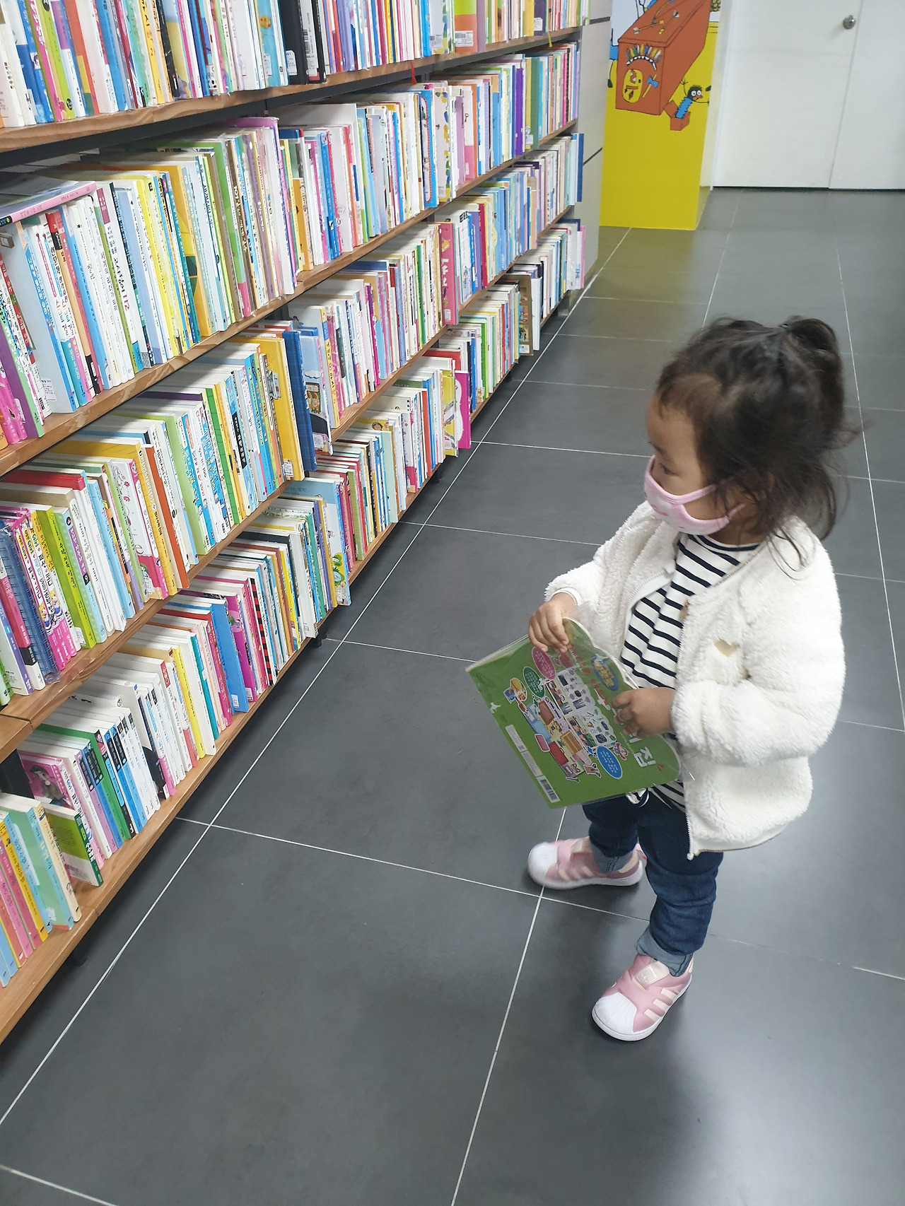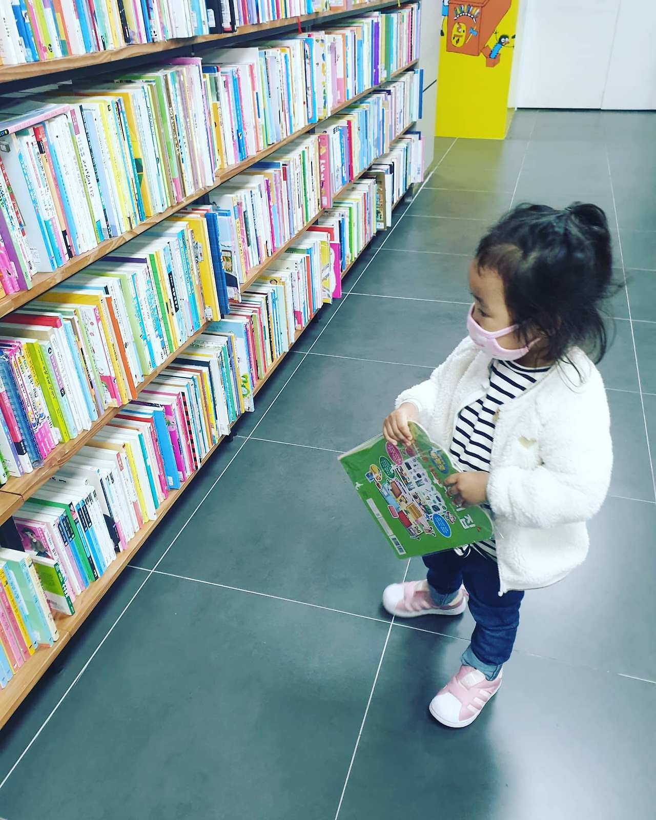 그림책 육아에 있어서 가장 좋은 장소 또한 서점이다. 중고서점, 대형서점, 그림책방. 요즘 책방은 아이들을 위한 공간이 거의 마련되어 있기 때문에 아이와 함꼐 그림책을 보는 것이 눈치가 보이는 경우는 크게 없을 것이다. 아이가 주어진 규칙을 지키도록 안내해야 하는 엄마의 과제가 주어지지만.
