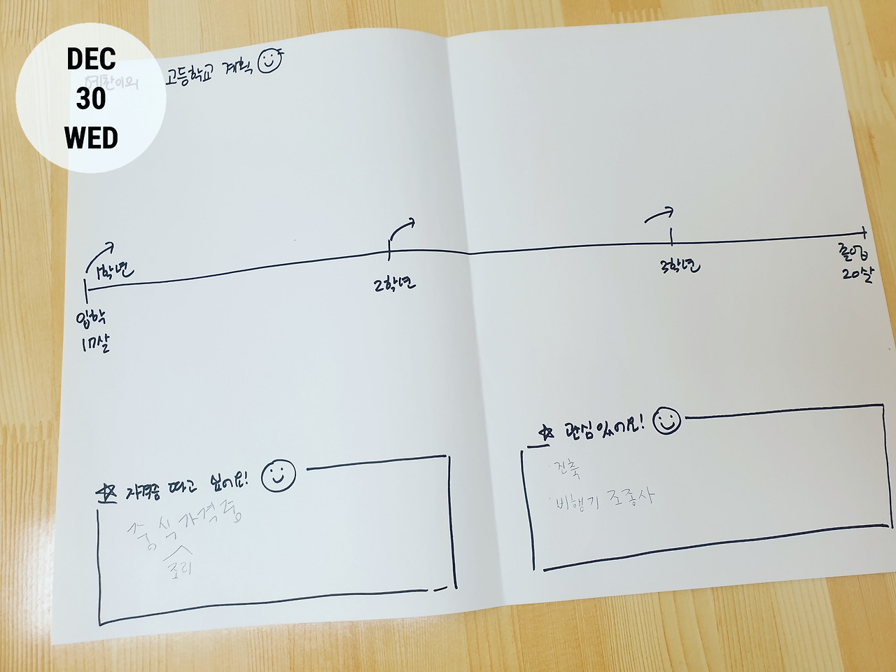 "고등학교 계획 세워본 적 있어?" "아니요." "그럼 나랑 같이 해볼래? 당장 생각하기 어려우면 집에서 채워와도 돼!" 우리는 코로나 관련 신문기사를 읽고 해석한 후에 고등학교 계획표를 만들고 채워나갔다. L군은 하고 싶은 것이 많았다. 중식 요리사, 플로리스트, 기관사 등. 곁에서 함께할 수 있다면 최선을 다해서 남은 3년의 시간 또한 함께하고 싶었다.