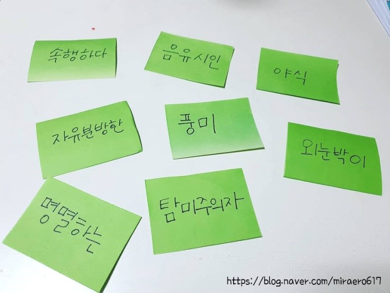 <단어 수집가>에 나오는 단어를 적어보고, 뜻을 예측하고, 찾아보았다.