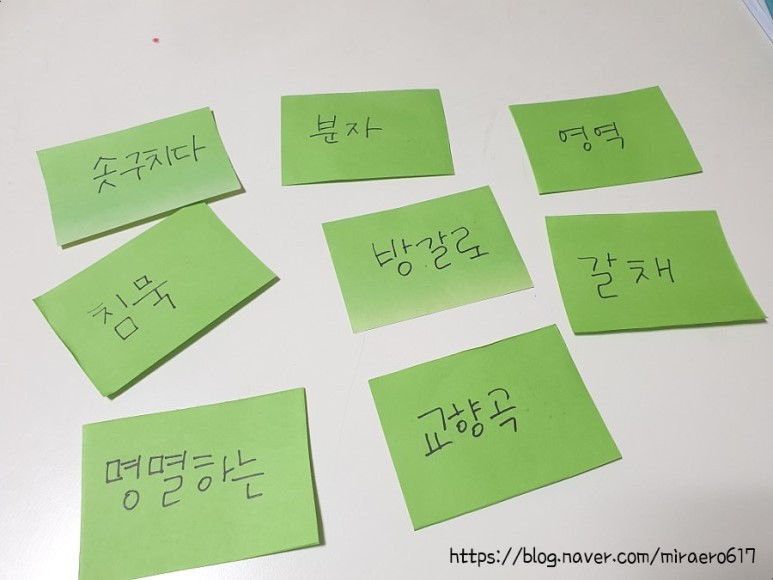 내가 만났던 홈티 어머님께서는 이 단어들을 아이의 방 문에 붙여 놓으셨다!