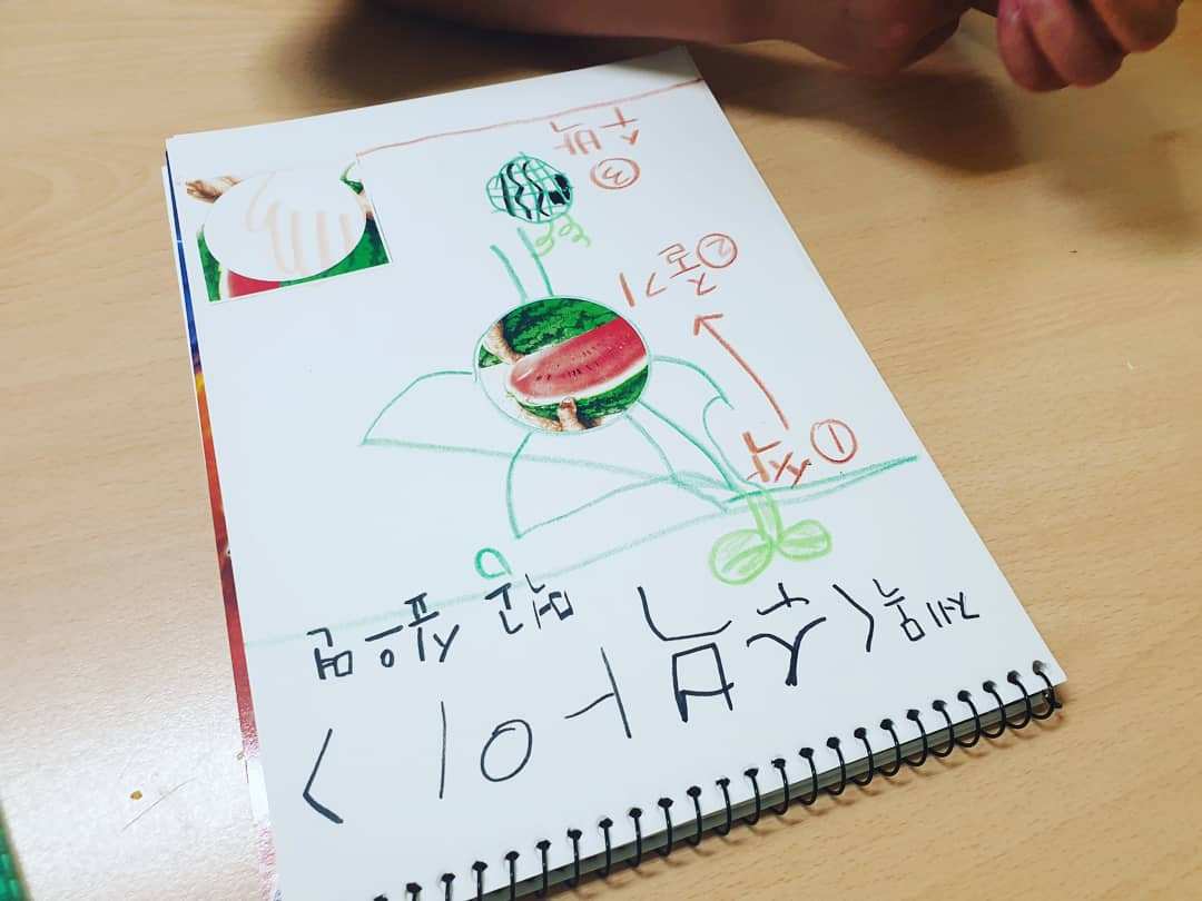 <수박이 먹고 싶으면> 책을 보면 농부가 수박을 키워내기 위해서 얼마나 많은 정성을 쏟는지 정말 섬세하게 그려내고 있다. 탐스럽게 수박이 커져갈수록 읽는 아이들과 나의 입에 군침이 돈다. 인공으로 만들어진 것들, 빠르게 만들어진 것들과는 너무나 다른 모습이다. 기다리고, 흙과 함께 호흡할수록 마음이 유연해지고 열매도 더 탐스럽게 맺어진다.