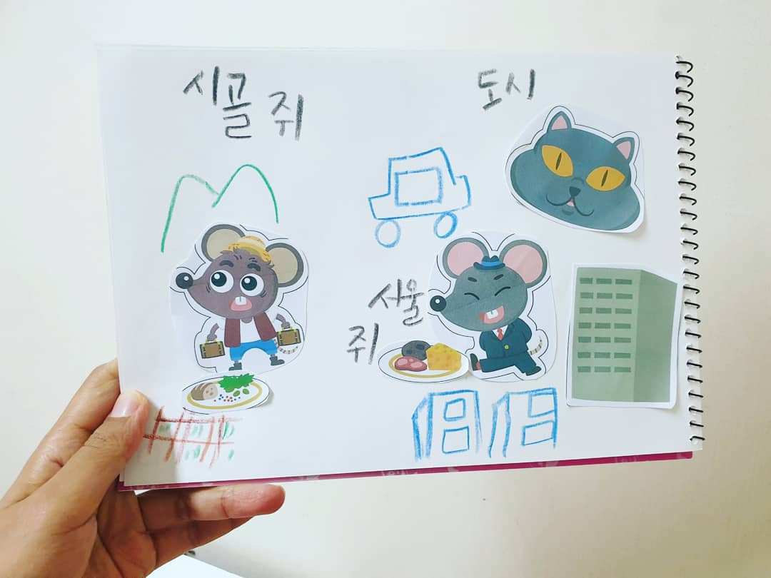 처음에 이 이야기를 아이들에게 들려줄 때에는 "선생님도 어렸을 적에 시골에 살았는데." 이야기로 운을 띄웠다. 이 책으로 활동을 할 때는 초등학교 3학년부터 배우게 되는 <사회> 교과서에 나오는 어휘들을 이해하는데 도움이 될 수 있도록 학년에 따라 어휘 난이도도 조절하는 편이다. 어릴 때부터 그림책 안에서 보고 들어왔던 <서울 쥐와 시골 쥐> 이야기를 깊이 들어가 보면 새로 알아가는 어휘들이 많다는 것도, 또 서울쥐와 시골쥐의 마음이 어떠한지 예측해보는 재미가 있다는 것도. 아이들이 알아가게 된다.