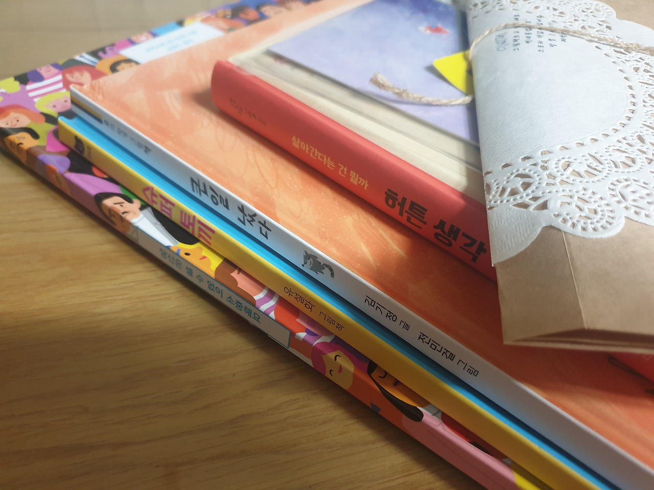사진은 2019년 가을 무렵의 사진들이다. 그림책 배송이 오면 아이를 태운 유모차 뒤에 그림책을 그대로 싣고 카페에 들어가서 예쁘게 그림책 사진을 찍었다. 치료실로 출근을 할 때는 치료실 공간 안에서, 때로는 집 안에서 그림책을 정성스럽게 찍어서 올리다 보니, 아이돌 가수의 팬들의 심정이 이해가 가기 시작했다. 아이돌 가수 대신 그림책에 빠져서 그림책 사진을 거의 매일 올리다 보니 때로는 신랑의 눈치가 보이기도 했다.