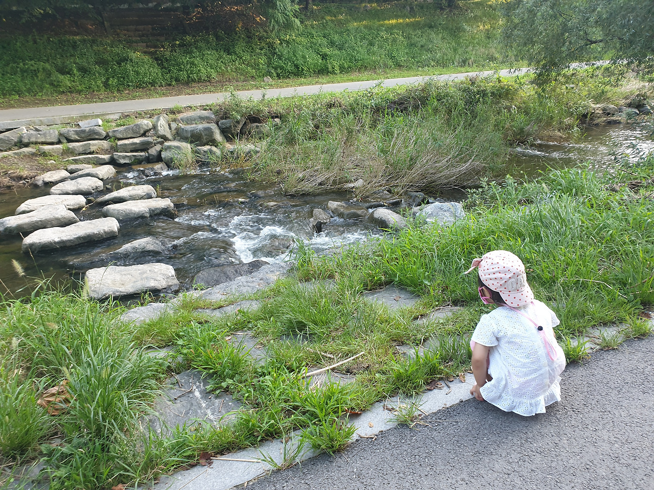 아이와 함께하는 산책은 집 앞 탄천이 전부. 여름이 되면 꼭 보여주고 싶었던 바닷가도 보여주지 못했다. 지지난주에 장마를 뚫고 보았던 계곡이라도 가지 않았더라면 아이의 눈 속에 들어온 자연은 엄마와 산책하는 동안에 보는 곳이 전부가 된다.