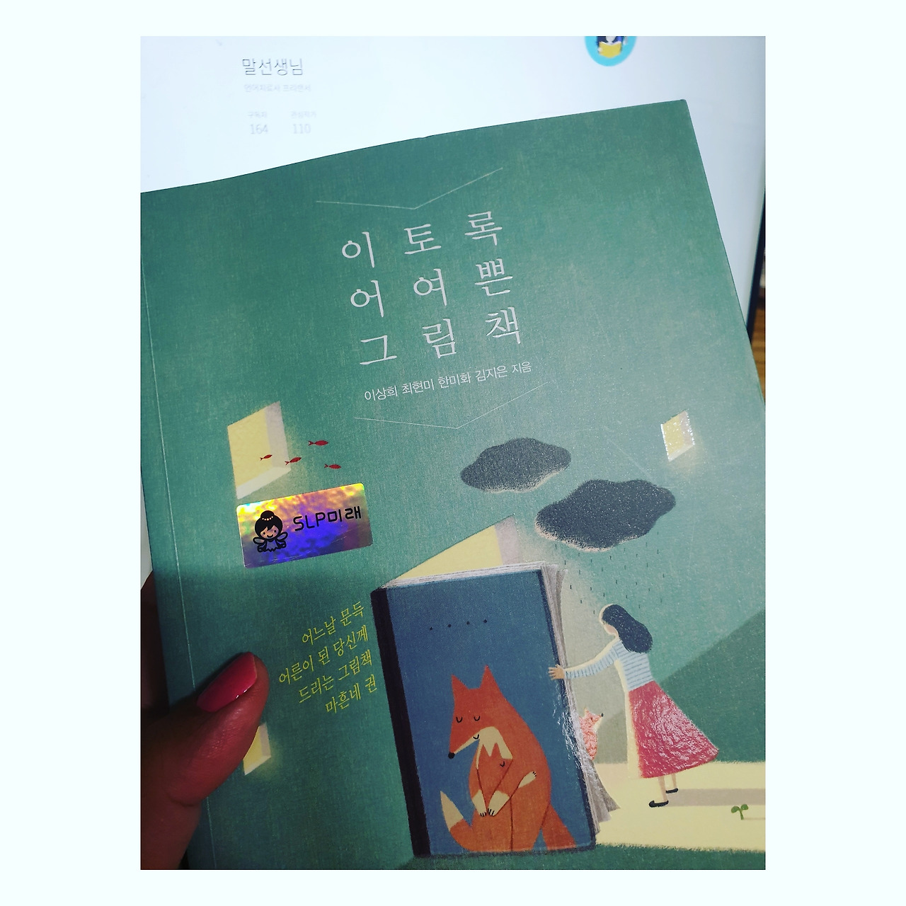 물론 나는 심리학을 공부한 사람이 아니기 때문에 상담 때 아이의 내면에 대해 전달을 함부로 할 수는 없지만 나와 함께하는 공간 안에서 함께 같은 그림책을 읽으며 그 순간에 받는 마음의 위로를 서로 느끼고 싶었다. 외부적인 곳에서 핑계를 찾으면 안 되겠지만 요즘은 마음을 쏟아낼 곳이 온라인 공간 외에는 없다. 줌으로 화상회의를 하고 요즘은 온라인으로 각자의 테이블에 찻잔을 놓고 '아아'를 마시며 랜선 만남을 갖는다지만 직접 만나서 눈빛을 주고받으며 손끝으로 마음이 전해지는 그 온도를 느끼기에는 아직은 부족함이 있다. 이후에 AI가 심리치료를 해줄 수 있다는 이야기를 들은 적이 여러 번 있지만 작년의 그림책 모임에서의 책 냄새, 함께 이야기를 나누던 분들의 냄새가 너무나 그립다.