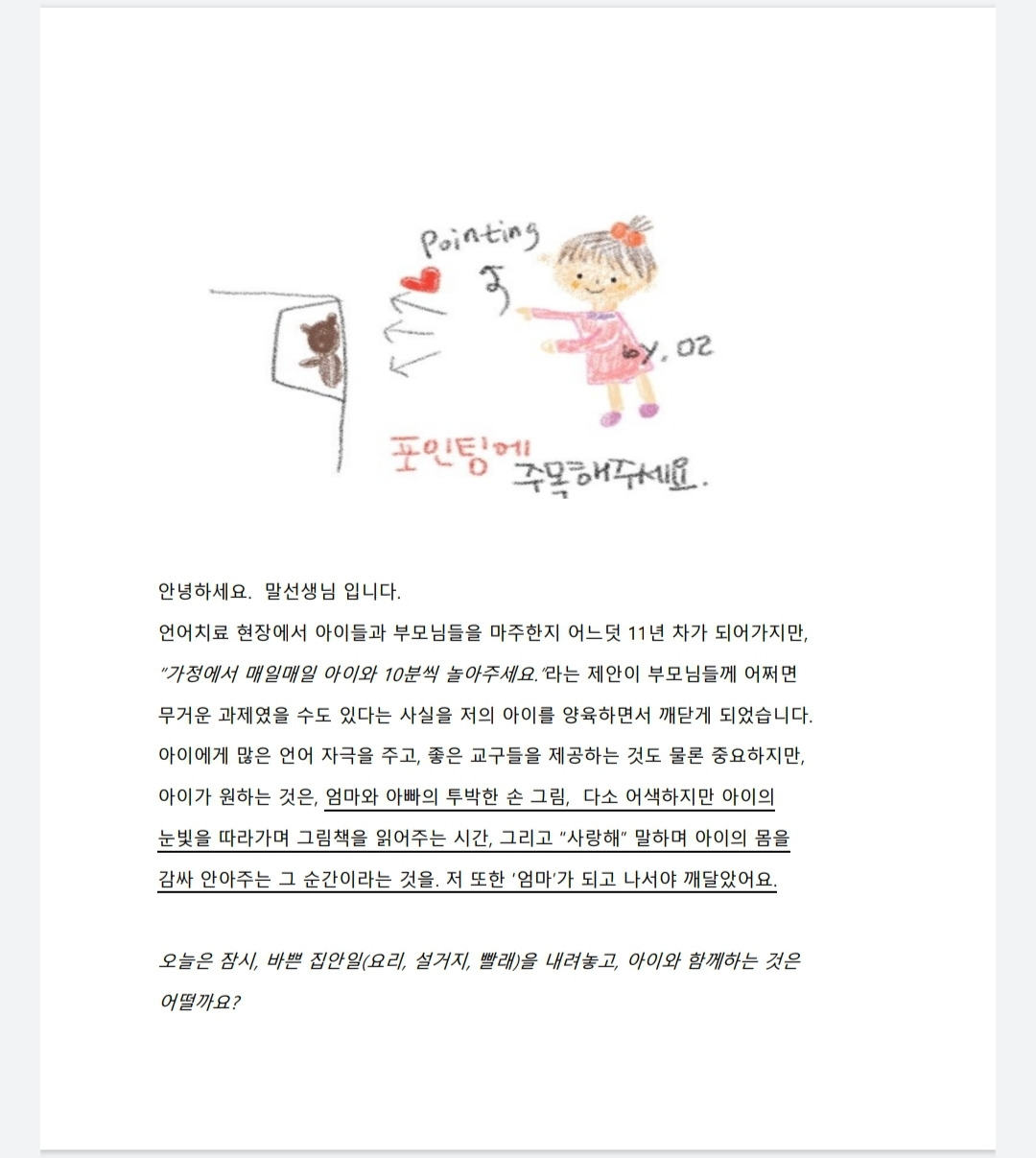 그동안 아이의 언어발달에 대한 이야기들을 적었다가 다시 지웠다가 반복했던 시간들이 있었다. 간간히 올린 글도 있었지만, 글을 올리려고 하면 시중에 이미 출판된 언어발달 관련 양육서들이 보였다. 조금 주눅이 들어서 글을 삭제한 적도 있었고 나보다 훨씬 더 노련하게 설명해주신 것 같아서 글을 삭제한 적도 있었다.