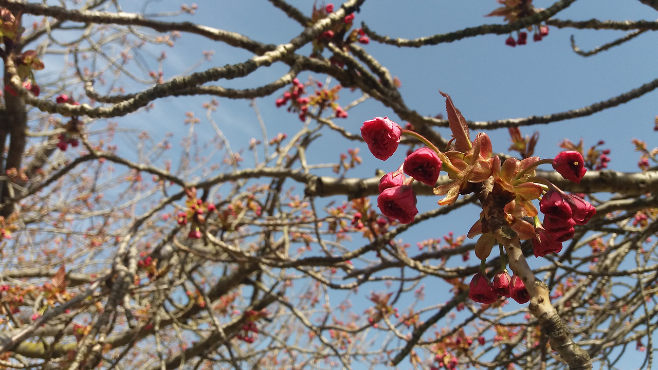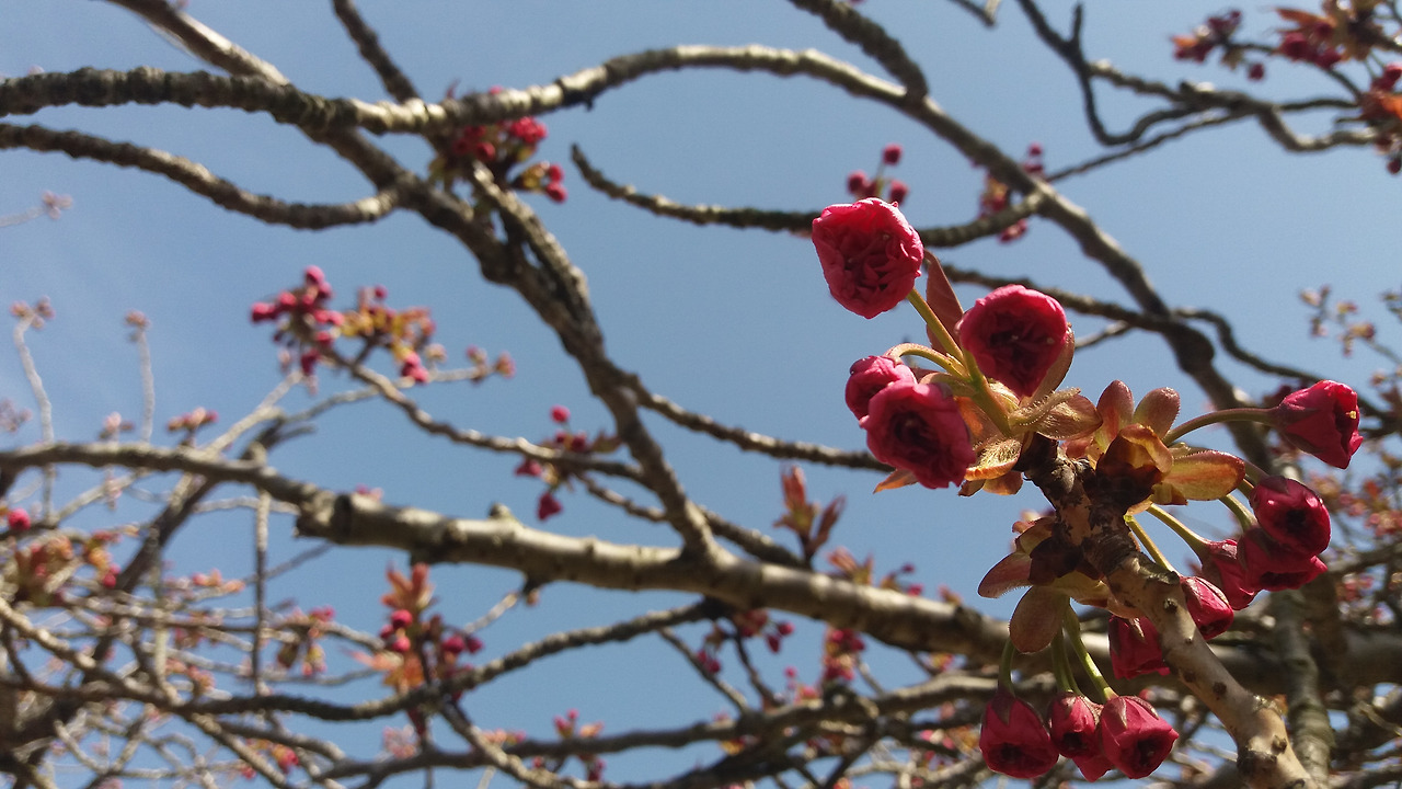 낮게 몸통을 세운 꽃잎이 버들가지가 되었어요.