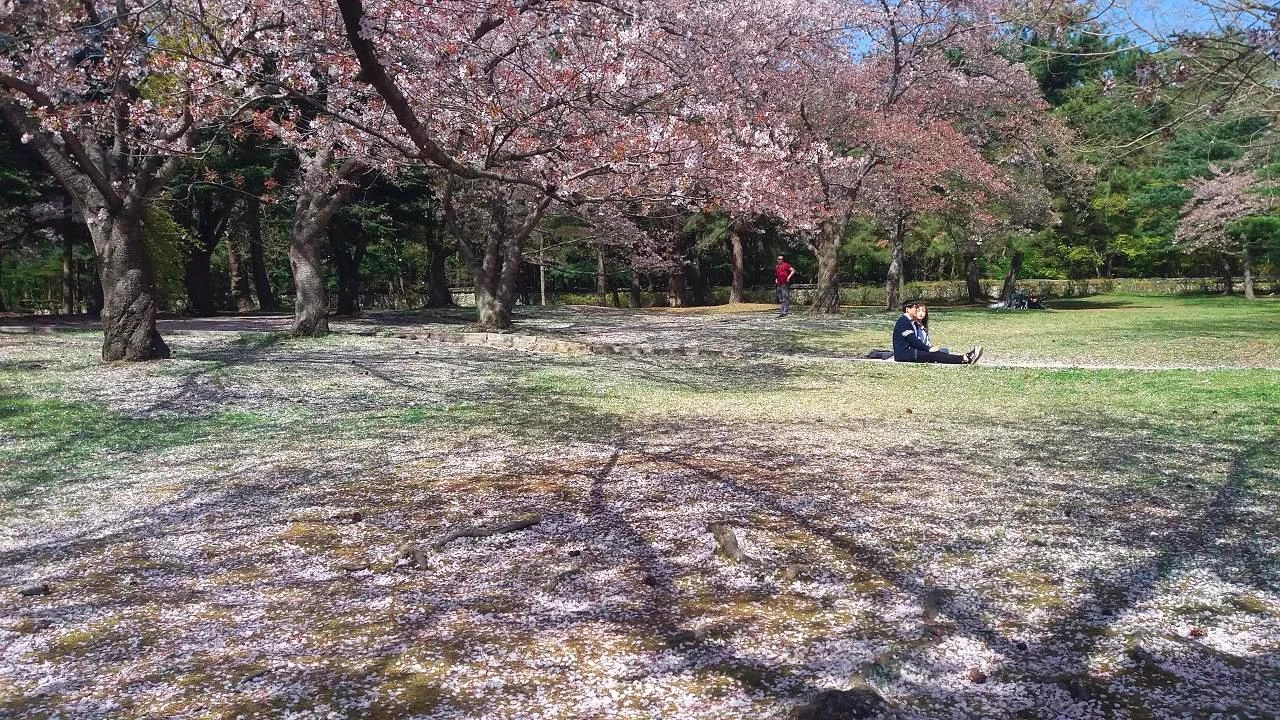 꽃비가 내린, 꽃눈이 쌓인, 경주 불국사 벚꽃공원에서