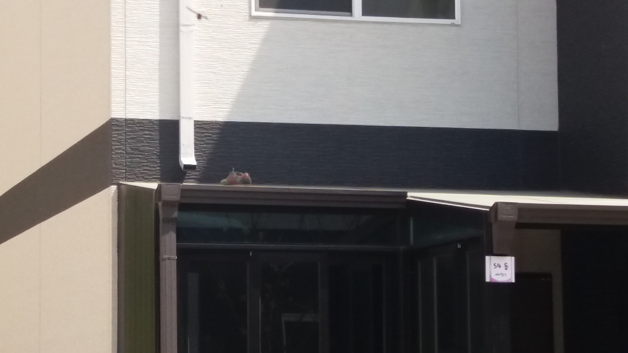 아들의 신발이 이웃집 지붕으로 날아올랐답니다.