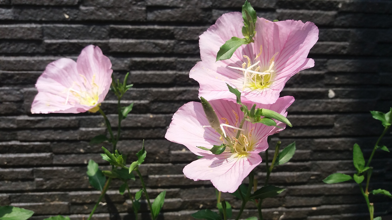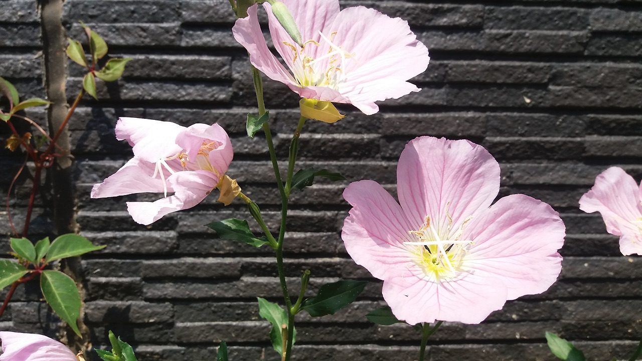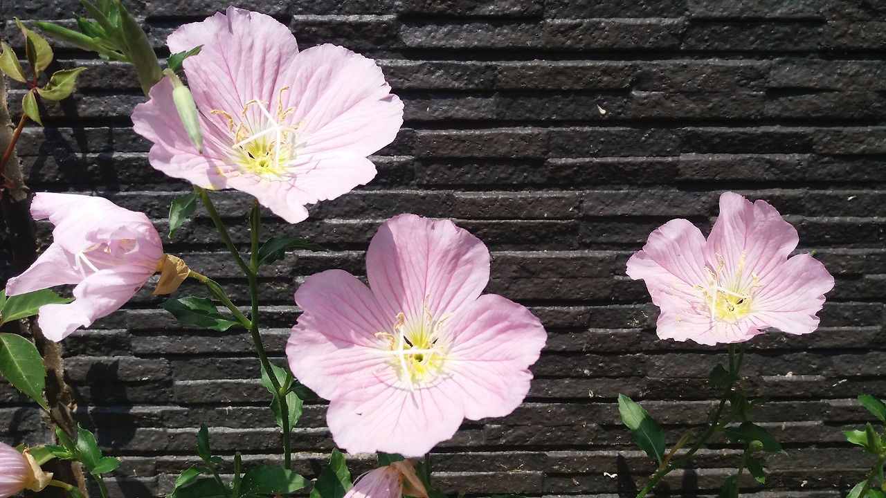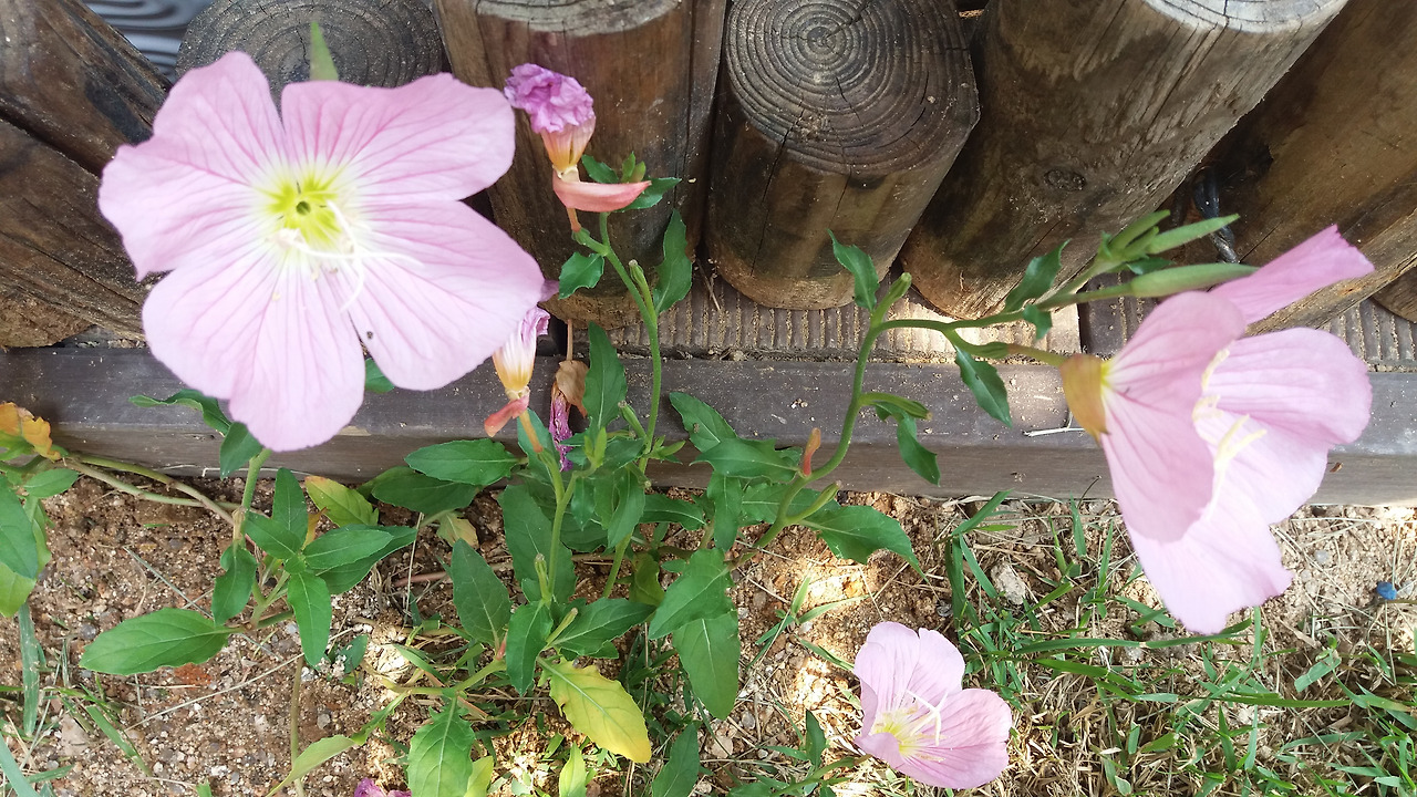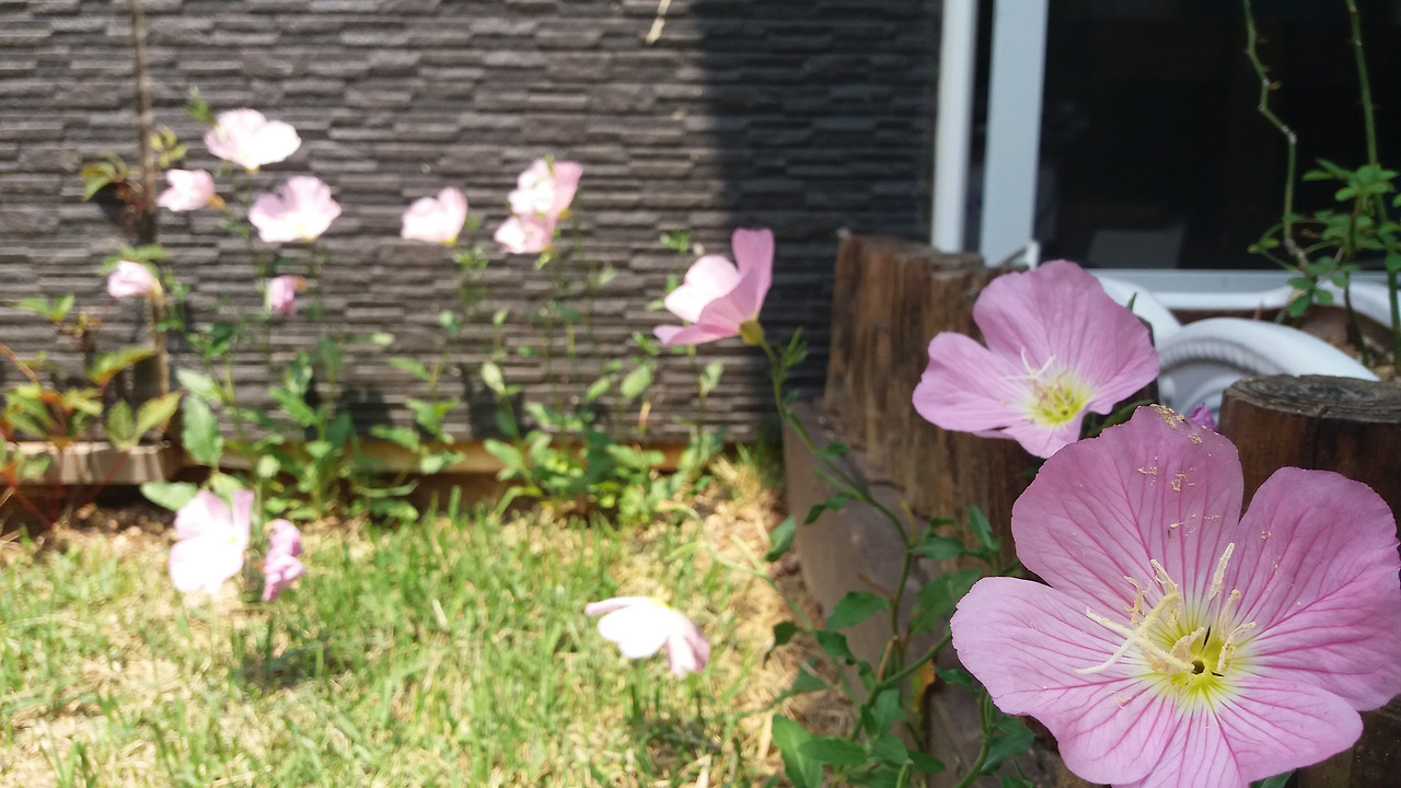 낮달맞이꽃은 꼭 손님을 부르는 꽃 같다. 지난해 양동마을 한옥 마당에서 낮달맞이꽃과 마주하고 난 후, 우리 집 마당에 그 꽃이 어울리는 장소를 그려보기도 했다. 비록 한옥 마당은 아니지만, 푸르른 잔디가 함께하고, 회색 벽이 올라간 창문 옆에 자리를 마련해 주었다. 엷은 분홍과 어울리는 검정 계열과 그리고 나무에 가려 음지를 간혹 만들어주기도 하는 자리로 말이다. 꽃잎에 웃음을 활짝 머금고 있는 소박한 꽃잎을 보며 지나가는 이웃들도 조금씩 관심을 보여주고 있다.
