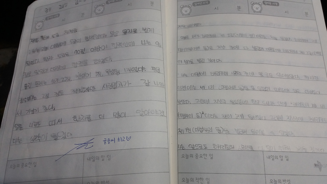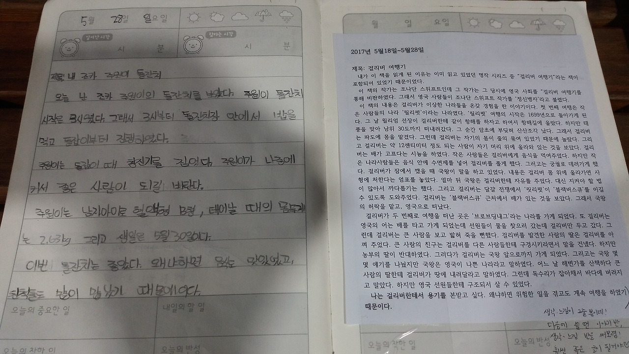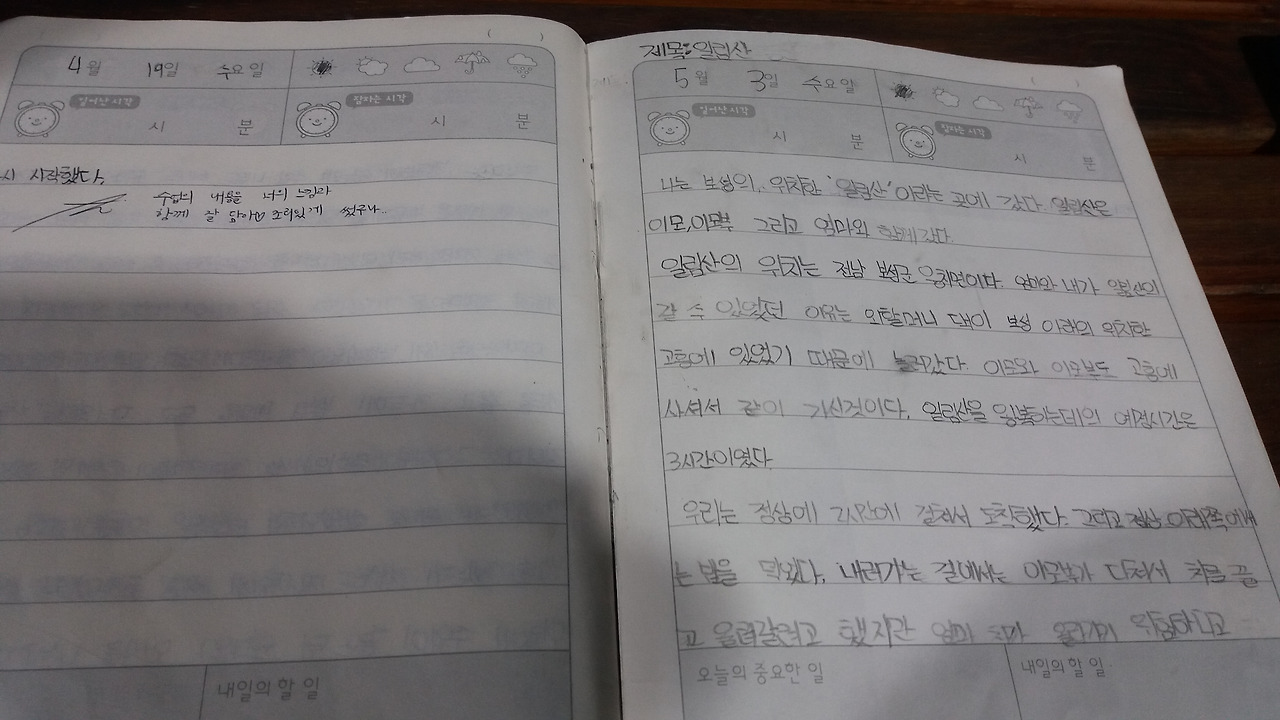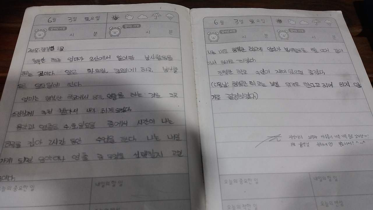 선생님은 한 권의 일기장을 끝낸 녀석에서