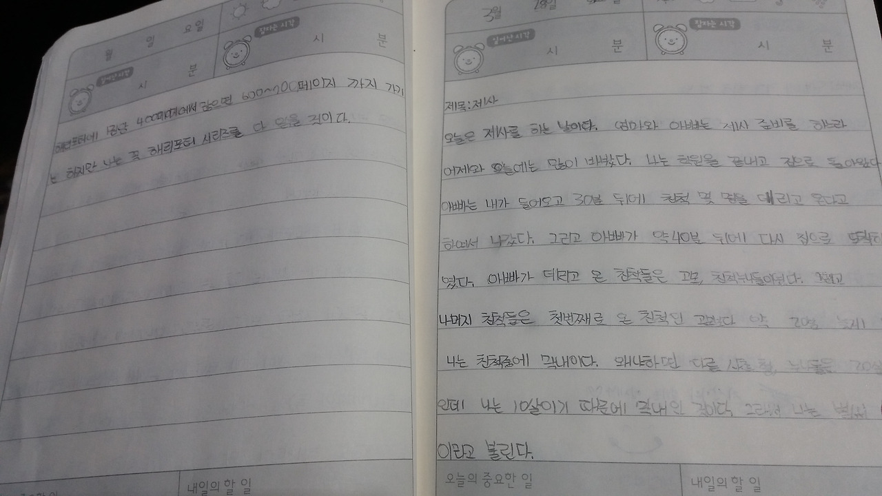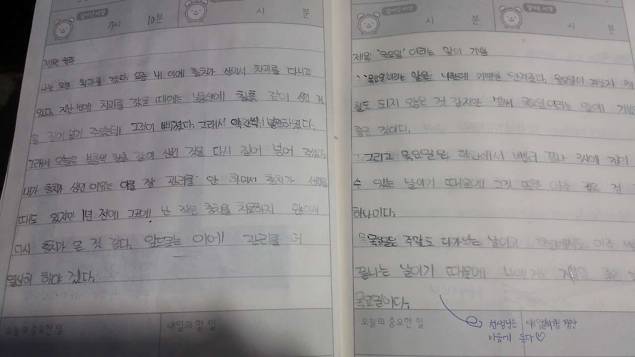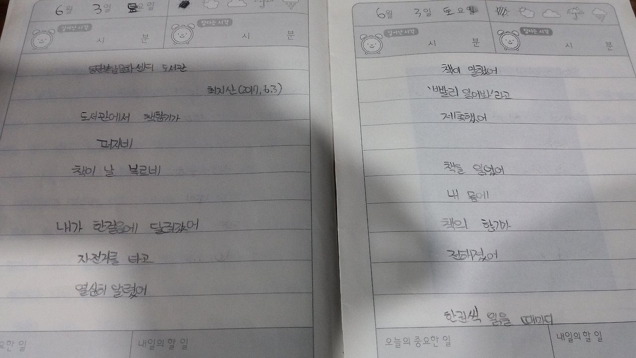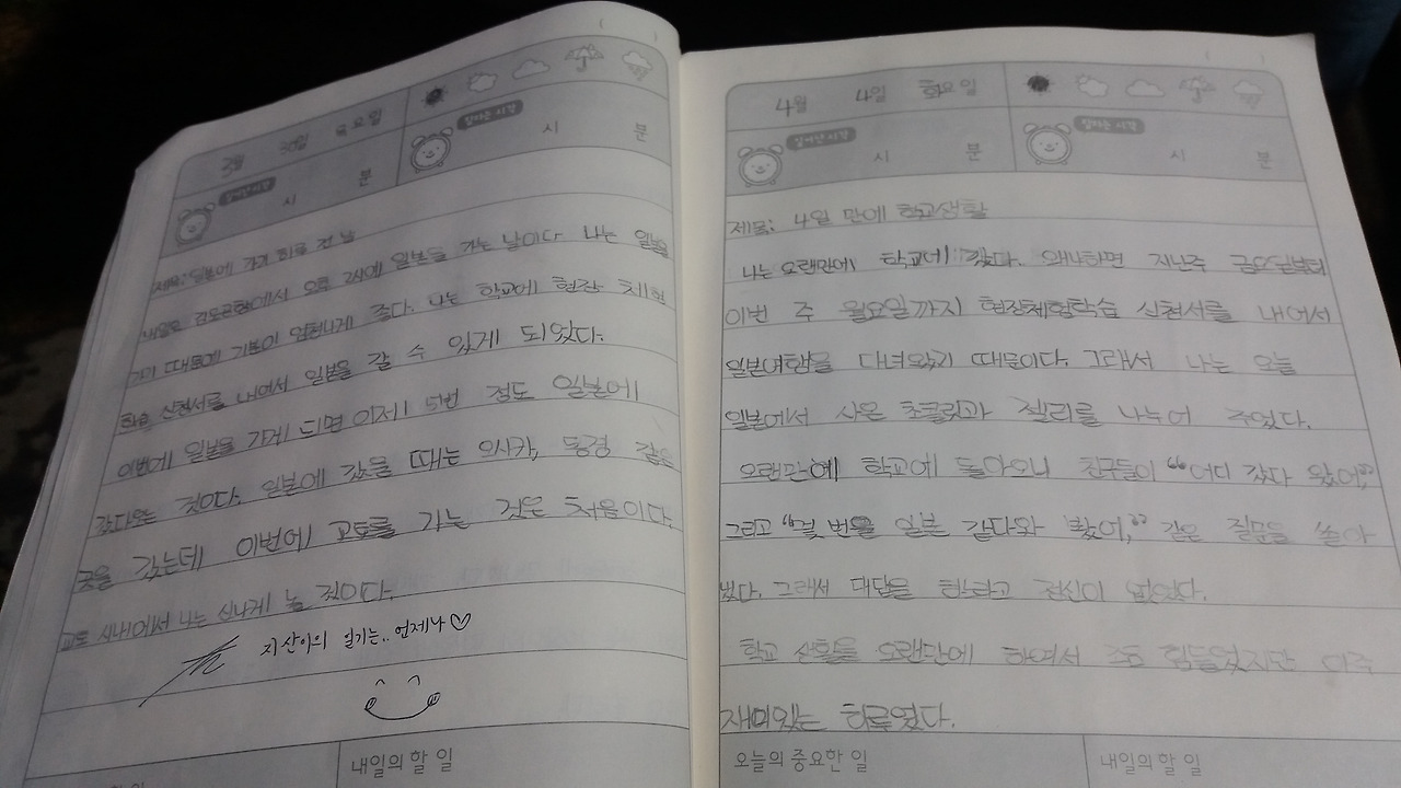 일주일에 한 번 '일기'를 쓰는 과제가 있었다.