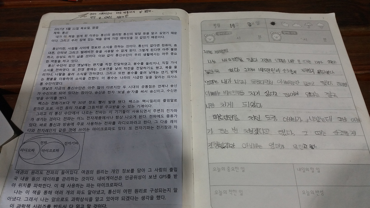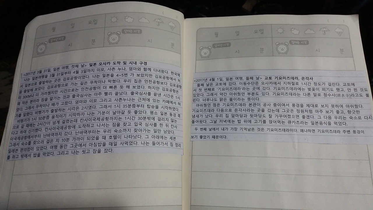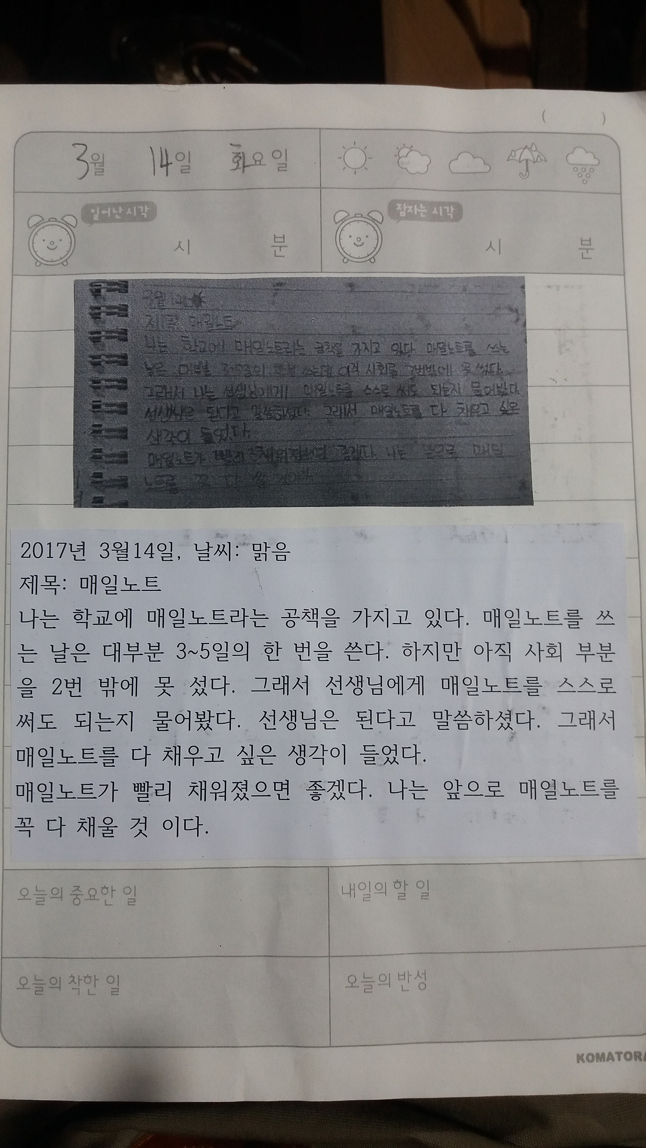 학교에서 쓰는 '매일 노트'라는 것도 알게 되었고,