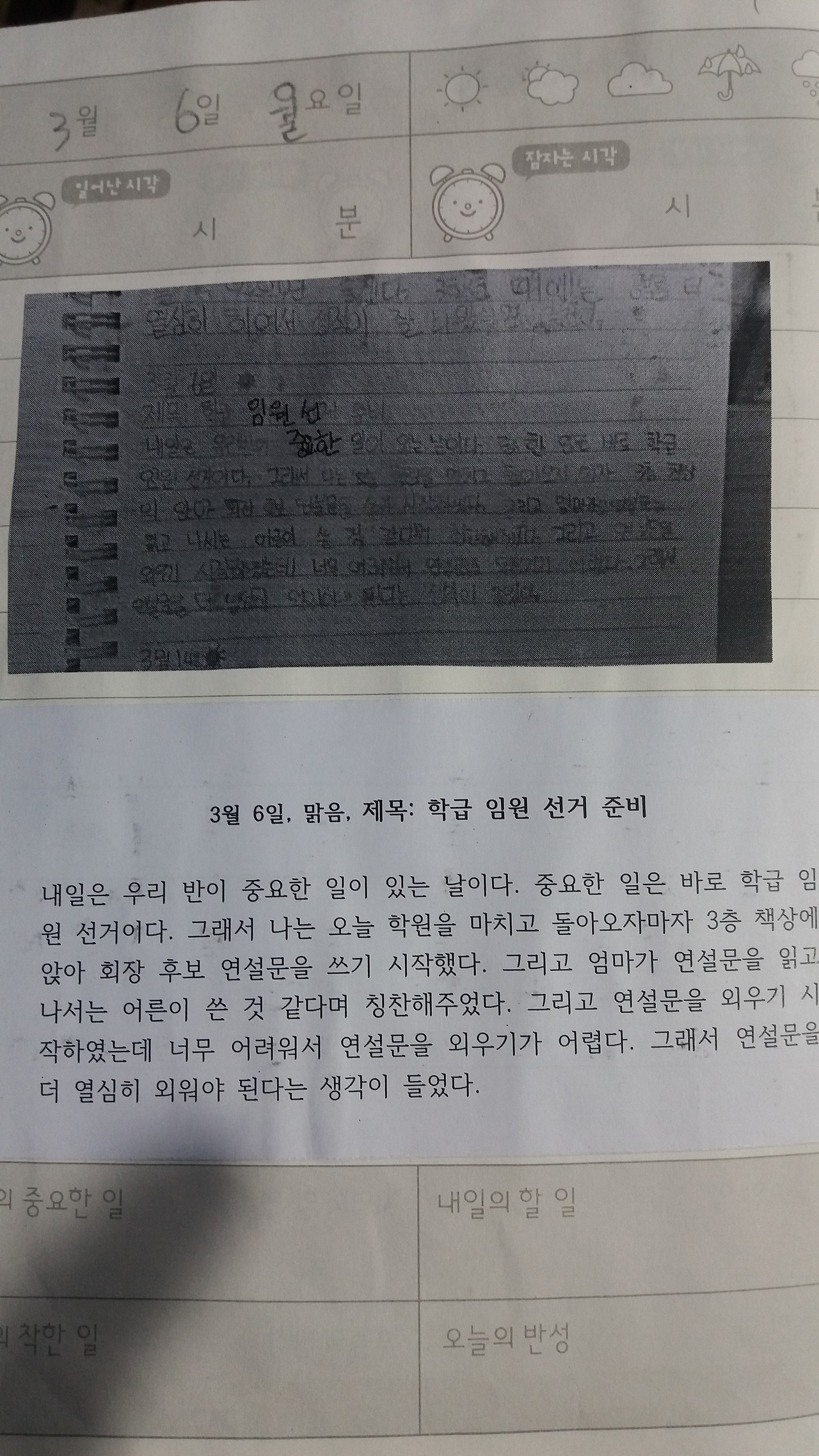 '학급 임원 선거 준비'를 하는 모습을 자세하게 글로 담아내는 녀석이다.