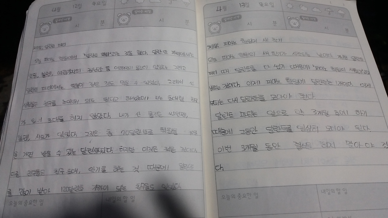 '피아노 학원의 새 학기'를 일기로 옮겼다.
