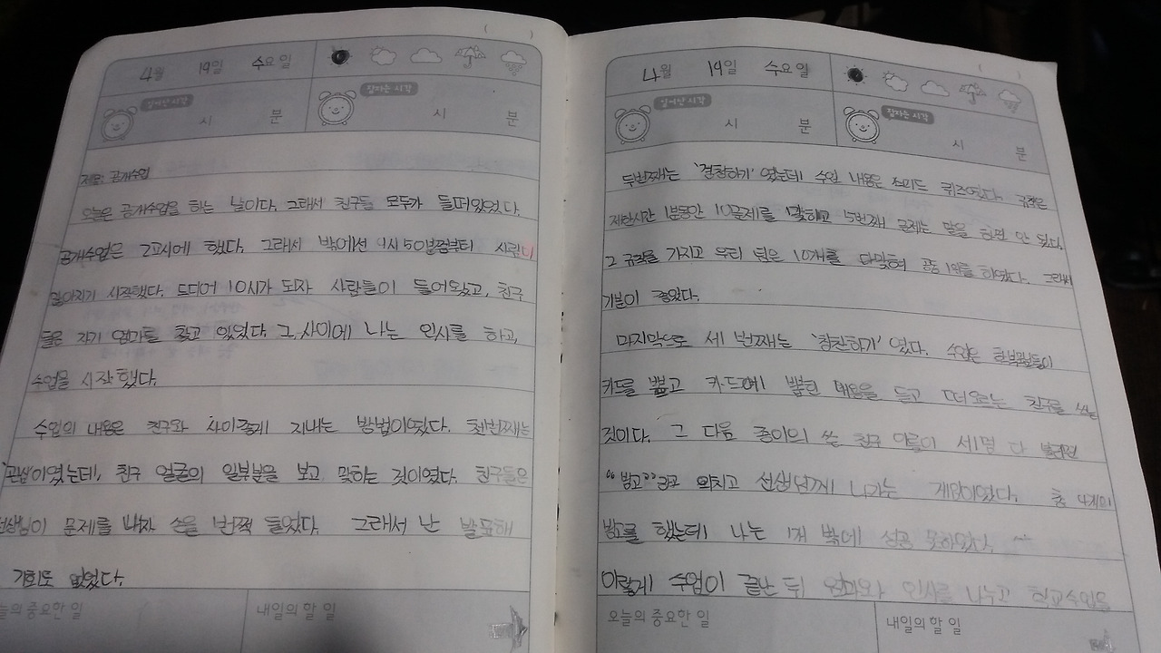 '공개수업'을 일기라기보다 긴 보고서처럼 적어냈다.