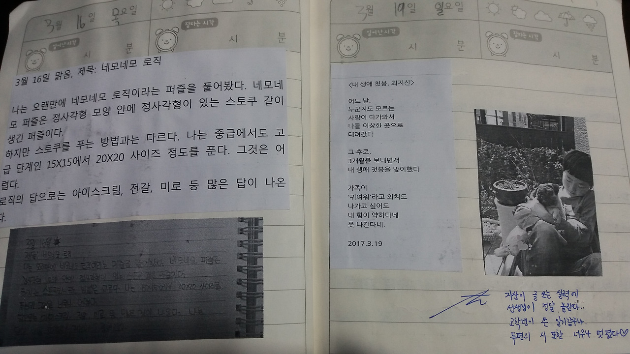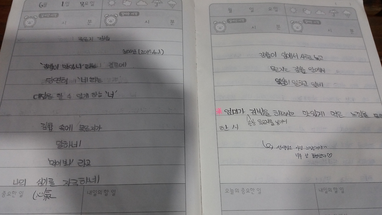 아이의 일상은 일기 과제가 되고 때론 시가 된다