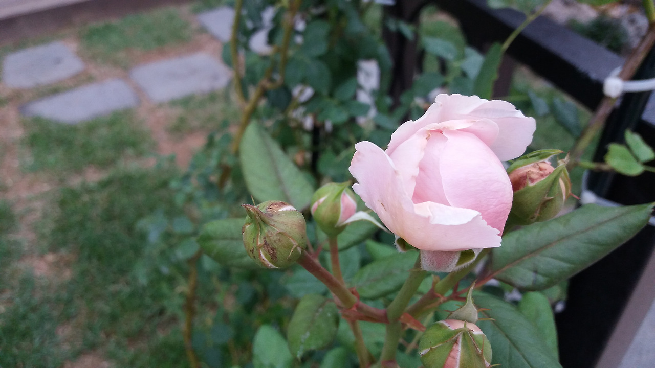 보슬비가 한 번 더 내려주면 좋겠다. 온 힘을 다하고 있는 다비드 오스틴 영국 장미가 활짝 꽃잎을 펼칠 수 있게 말이다.