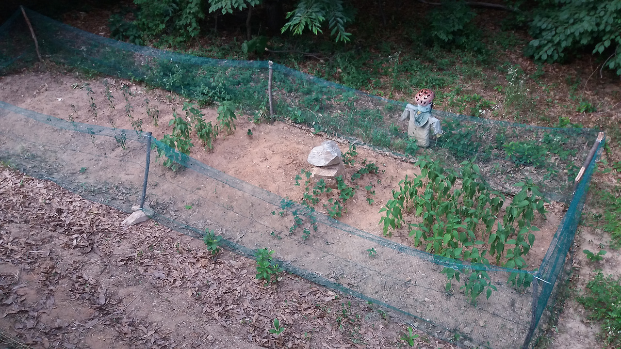 아이는 일기장 속 비가 오는 날, 집 근처에 있는 야산 텃밭을 둘러보았나 보다. 이 사진은 무성해진 잡초를 아이 아빠가 걷어낸 후다. 최근 가뭄이 들어 거의 말라비틀어진 돼지감자와 고추의 모습이다.(2017년 6월 21일, 하지)