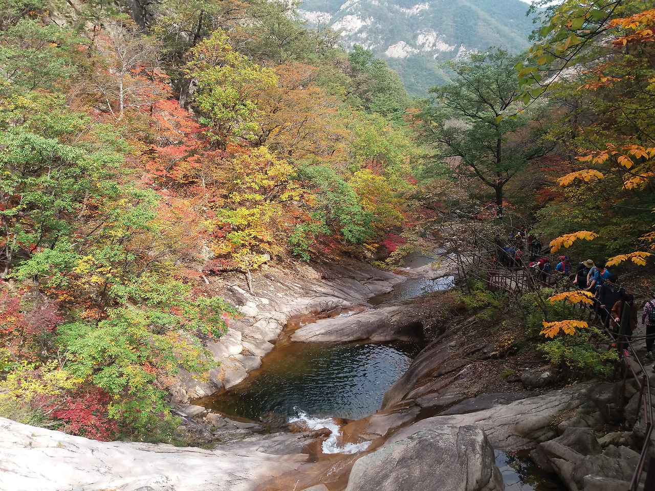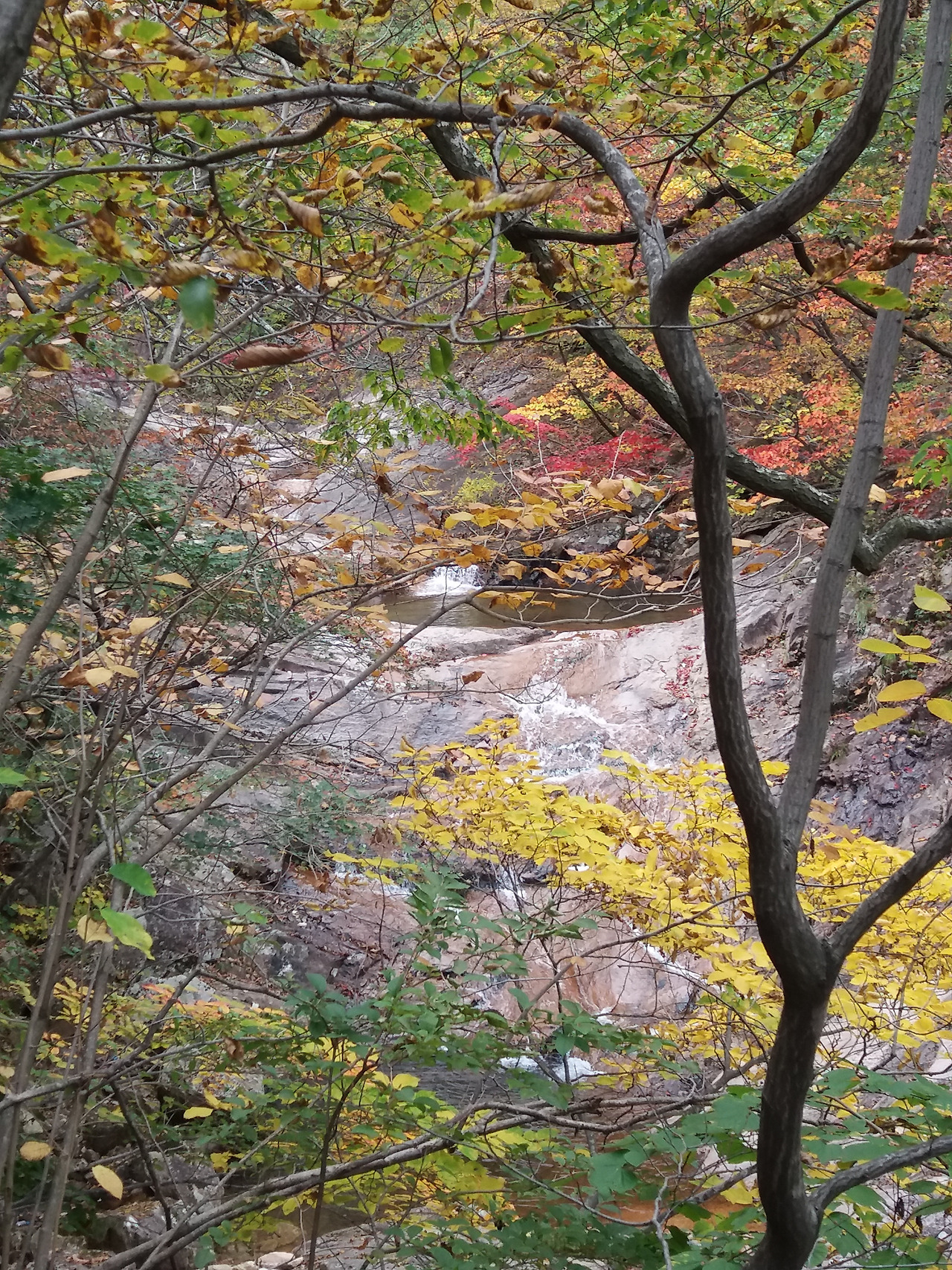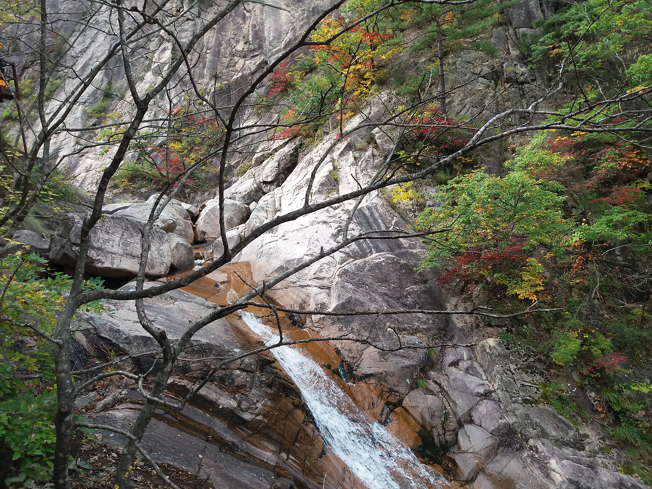 비룡폭포로 향하는 길은 편안한 길이었다. 난이도가 낮은 보통 길. 몇 군데 철제 계단과 오르막을 통과하면 되는 정도였다. 내 수준과는 거리가 멀 듯해 보였지만 그래도 표지판을 보니 안심이 되었다. 산책을 위한 산책으로 이 가을을 넘기고 싶었다. 깎아지른 산길 속에 내가 있다. 울긋불긋 기암괴석의 틈새 사이로 보이는 가을을 온몸으로 맞이했다.