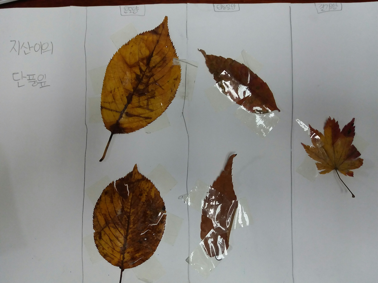 "엄마! 다음 주, 수업 시간에 낙엽이 필요하대요. 선생님이 5장 주워 오라 했어요."