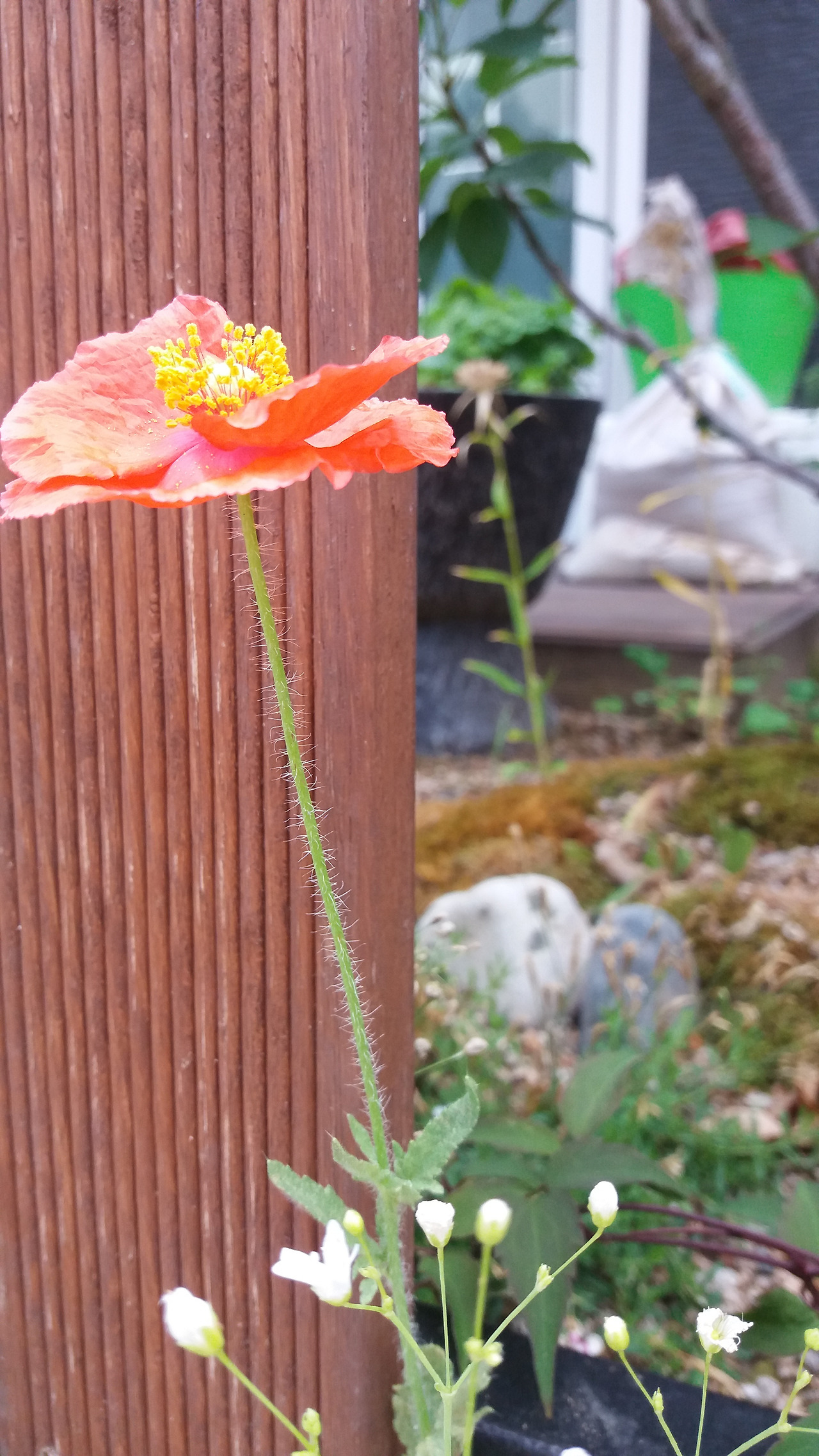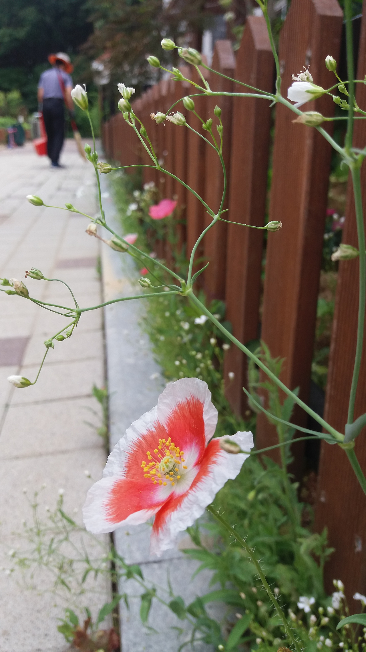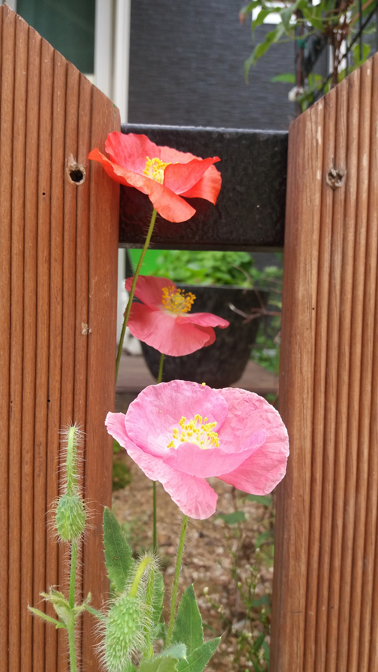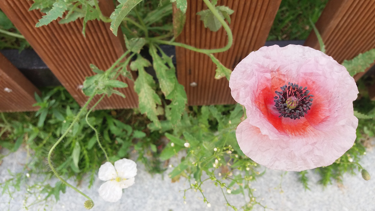 꽃양귀비가 일찍 꽃잎을 떨구더라고요. 많이 아쉬워하고 있었죠. 그런데 꽃잎이 큰 녀석들은 며칠 더 가는 것 같습니다. 제일 왼쪽에 있는 녀석은 3일 정도가 되었는데도 고운 자태를 오래 보이고 있더라고요. 키가 작거나 영양분이 부족한 상태에 노출된 녀석들이 바로 꽃잎을 떨구나 봅니다. 울타리 안에서 7월까지는 여전히 피고 지고를 반복하면서 즐거운 눈요기를 줄 녀석이 고맙습니다. 저녁이 되면 하늘거리는 소리가 귓가에 번지는 듯하다고나 할까요.