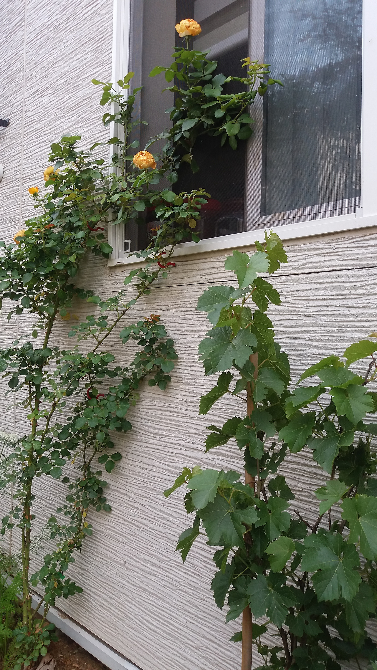 장미는 꽃이 지고 난 자리를 다시 가지치기를 해 주었죠. 그곳에서 다시 꽃대가 올라오기를 반복하면서 꽃을 피어내고 있습니다. 밖에서 부엌 안이 다 보이는 것이 불편해서 장미로 그 공간을 막아내려고 심기 시작했는데 충분히 역할을 해 내고 있는 듯합니다. 옆에 포도나무도 한 그루 심었는데, 올여름을 잘 넘기고 살아남기를 바라봅니다.