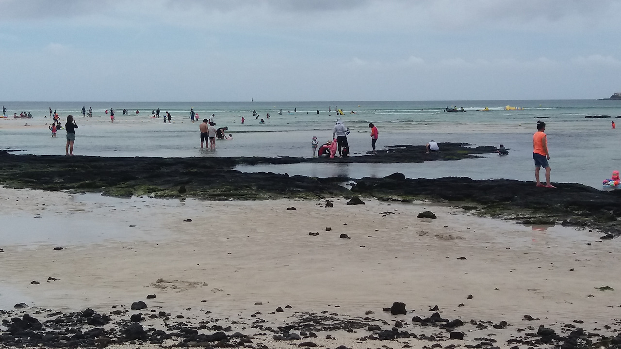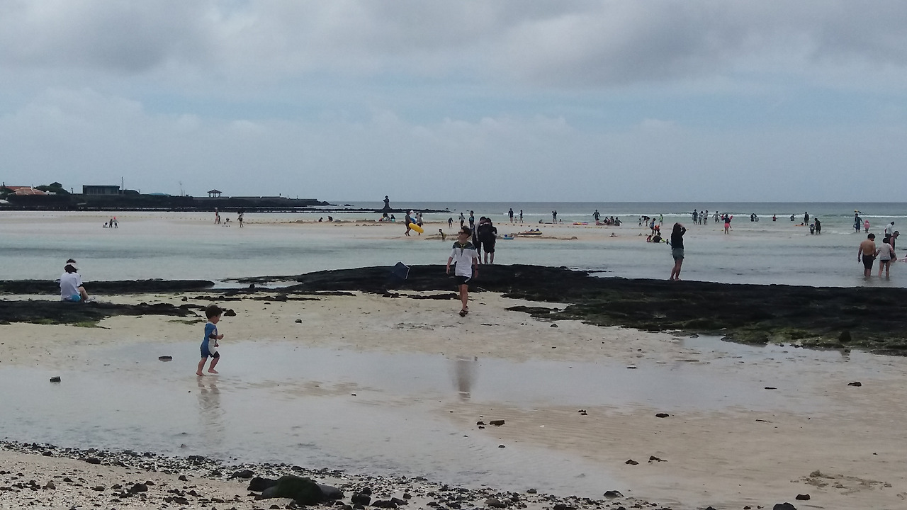 협재해수욕장을 지근거리에 있는 금능해수욕장은 아이들이 놀기에 최적의 해변인 듯했다. 썰물 때인데도 가까운 곳에서 물놀이를 즐길 수 있는 웅덩이가 만들어진 느낌이었다. 저 멀리 모래 사구로 인해 아이들은 걸어서 바다를 건너고 발로 손으로 온몸으로 바다를 느끼고 있었다. 물론 홀로 외로이 아들도 그 행동엔 변함이 없었다.