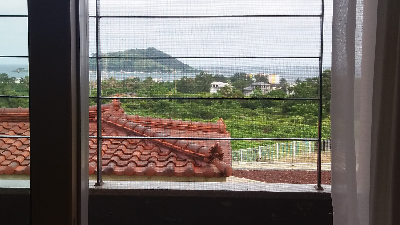 비양도가 보이는 호텔 숙소 안, 협재 해수욕장과 5분 거리. 더운 여름밤에 협재 해수욕장의 고운 모래에서 물놀이를 할 수 있기를 다시 희망해 본다.