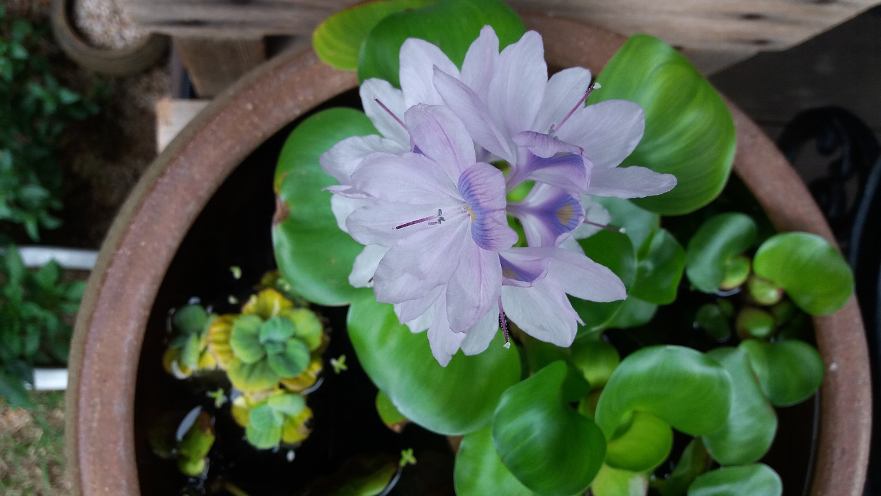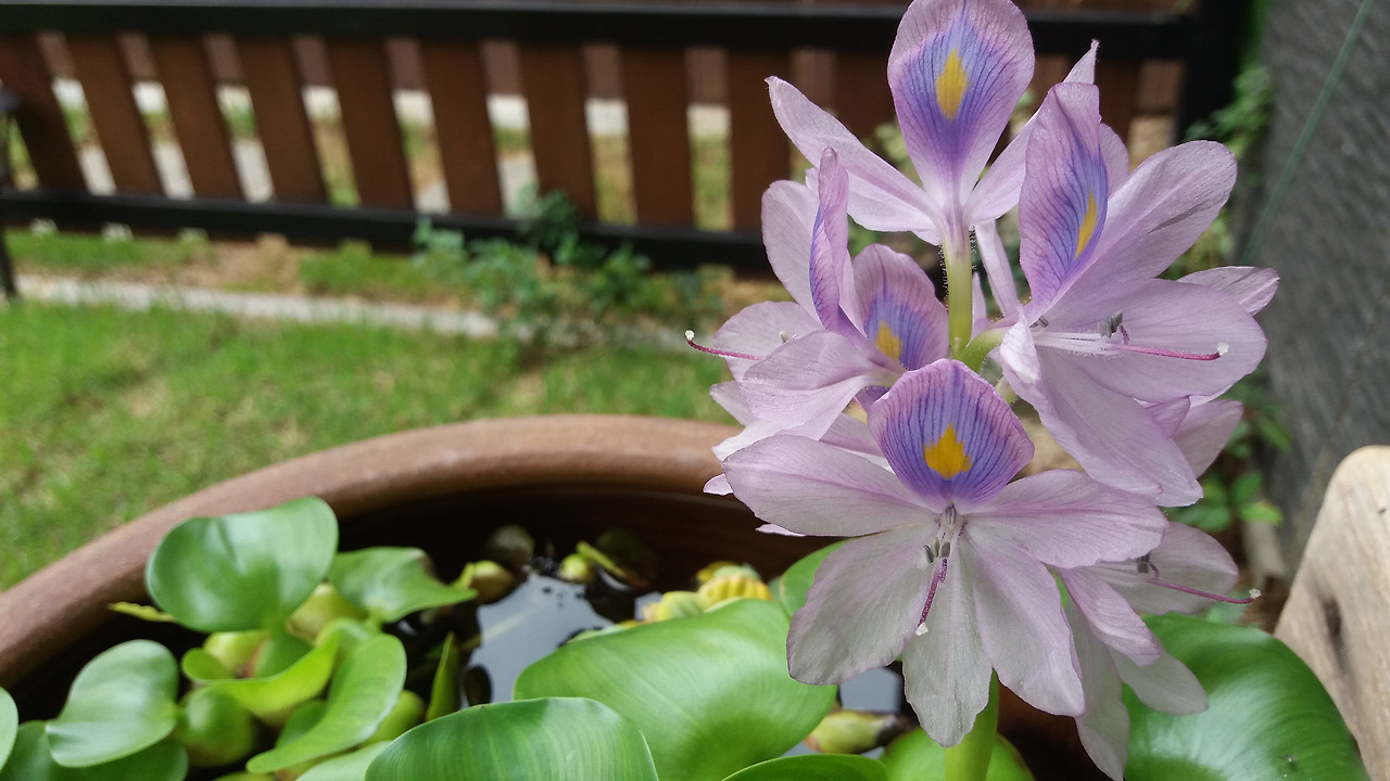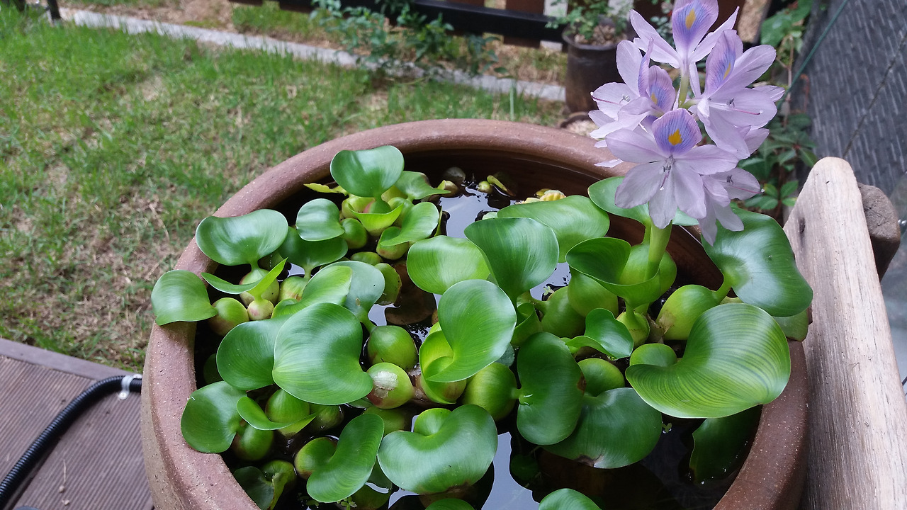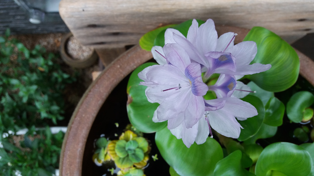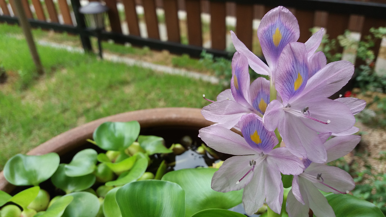 관심이 없었다기보다, 집에서 한 번도 키워본 적이 없었던 물 부레옥잠 꽃을 보게 된 것이 참 묘하다. 하루만 피고 진다니 그나마 내가 집에 있을 때 이렇게 귀한 꽃을 맺혀주어 감사하기까지 하다. 나무를 죽이고 놀고 있는 화분으로 수반을 만들어 자리를 옮겨 놓은 지 한 달이 채 되지 않았는데 말이다.