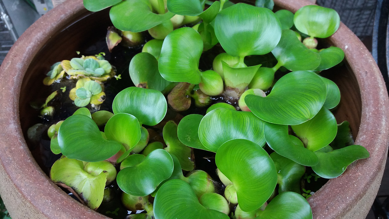하루살이 부레옥잠 꽃잎을 받아낸 호젓한 수반